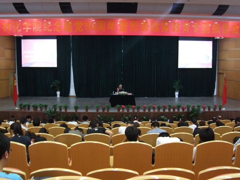 5月18日下午,为隆重纪念建党90周年,深入推进创先争优活动,大师兄影视 在钧儒厅隆重举行纪念建党90周年暨形势政策教育主题报告会,校党委宣传教育讲师团成员曹力铁教授应邀为学院师生作了一场题为“波澜壮阔九十年,中共党史纵横谈”的精彩报告,学院理论中心组成员和全体师生聆听了报告。