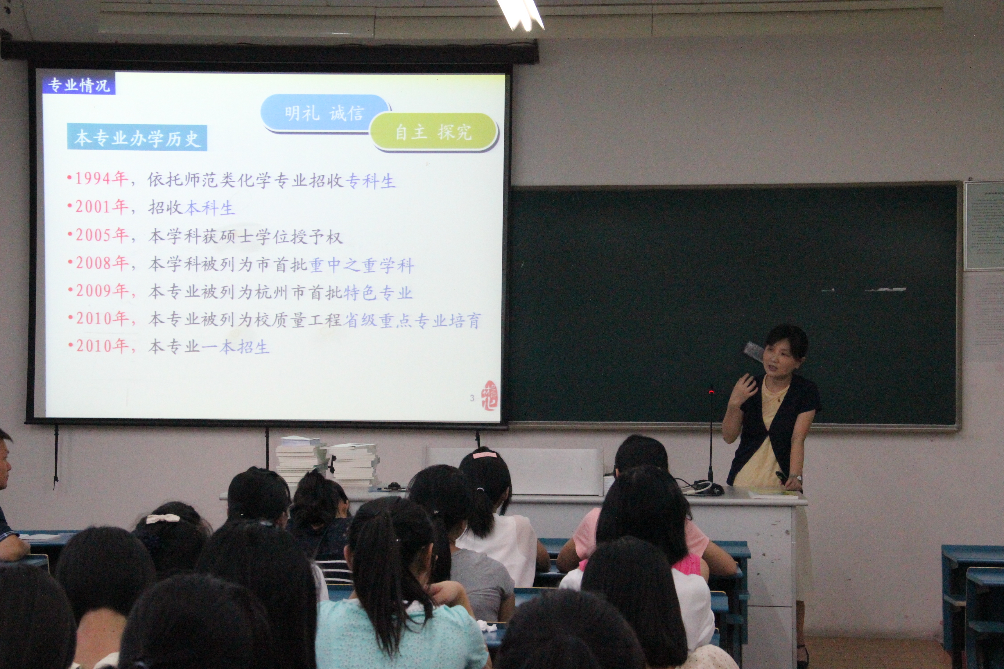 四位专业老师分别就化学、应用化学、高分子材料与工程、制药工程等四个专业向2013级新生们详细讲解了本专业的实际应用、专业发展概况、专业课程特色、专业发展前景及大师兄影视