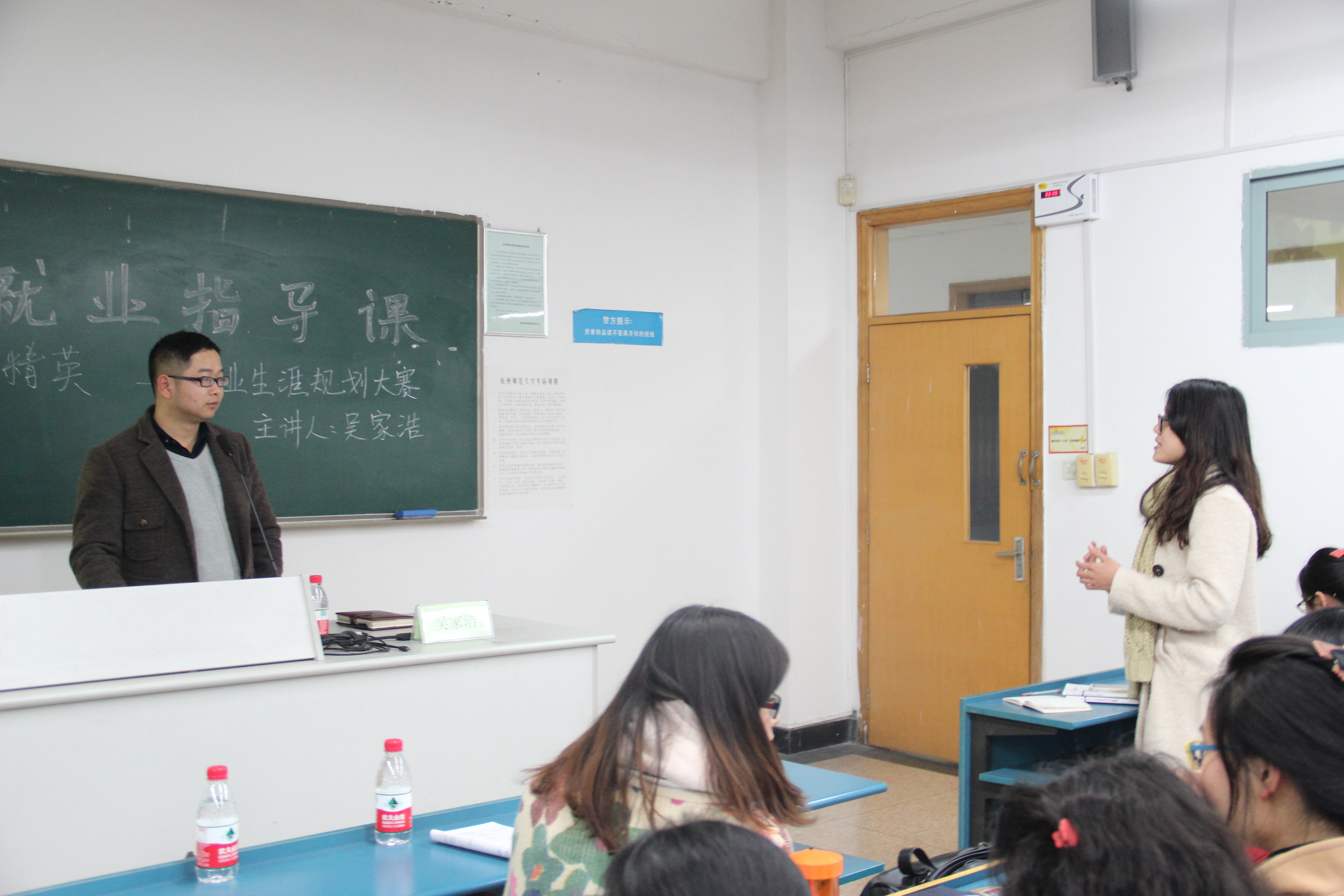 在吴老师介绍比赛流程之后,就进入自由提问环节。同学们就大赛的有关事宜提出自己的疑问,吴老师对此都一一做了详尽的解答。最后,在白老师的精彩总结后,省职业生涯规划大赛讲座落下了帷幕。