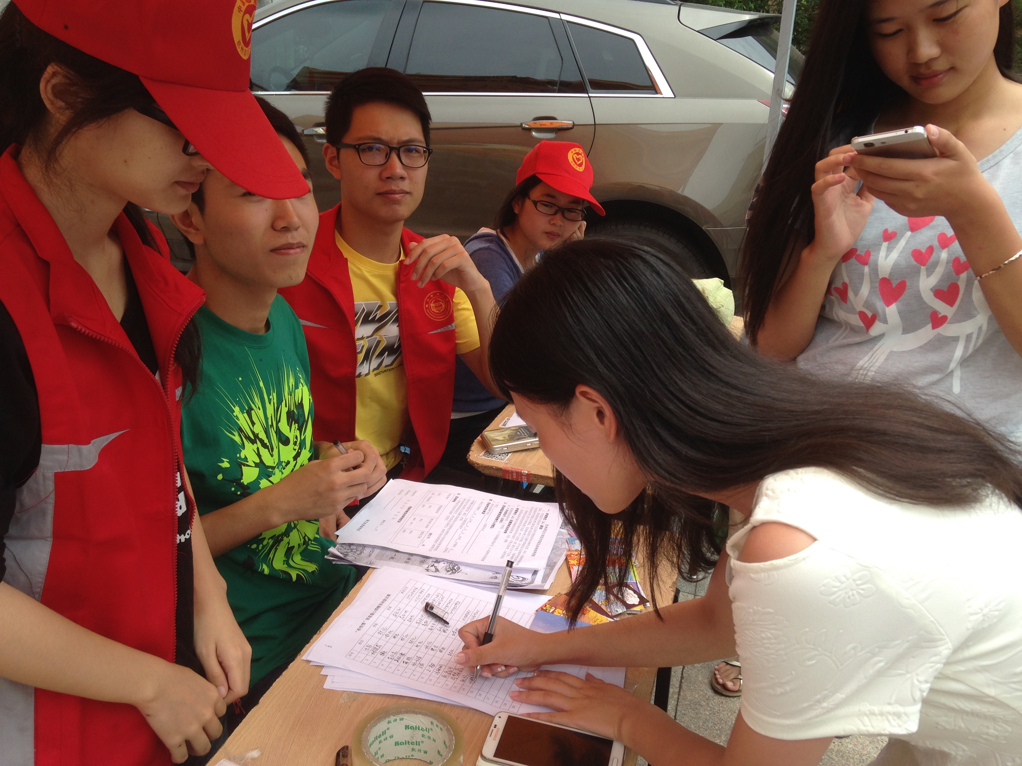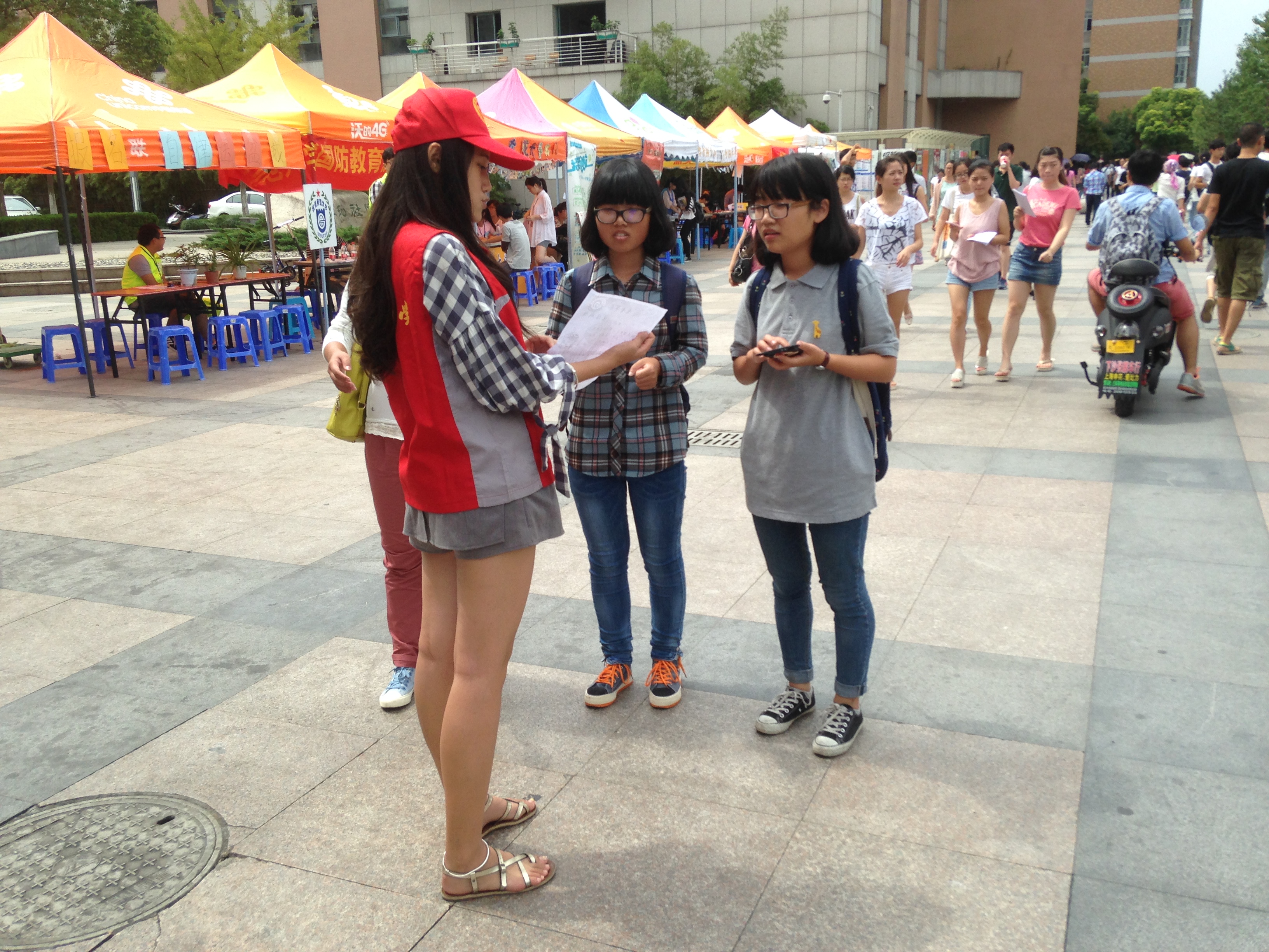 面对穿着整齐军装的大一新生,志愿者热情地向他们介绍“衣传情”军训服装爱心捐赠活动,很多新生当即表示一定要为内蒙古贫苦地区的孩子们献上一点爱心。在志愿者的疏导下,捐赠活动有条不紊地进行着,箱子里象征爱心的军训服越叠越高。汗水顺着志愿者脸庞流下,但是他们却面带满足的笑容。下午14:00左右,活动进入尾声,第一天的活动圆满结束。