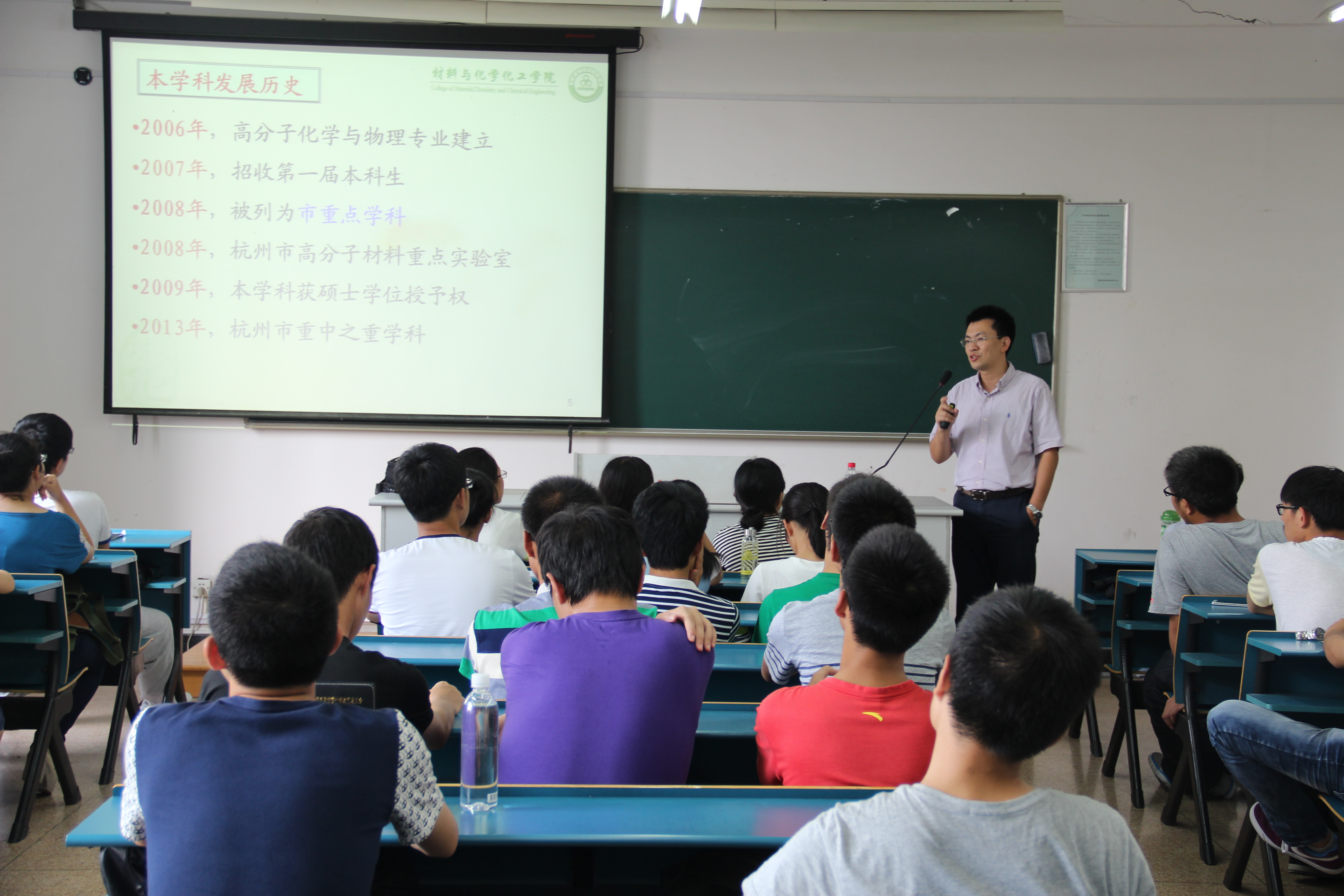 于A楼216教室举办了高分子材料与工程专业的专业导论讲座。此次讲座由专业负责人李勇进教授和学院骨干教师尹守春教授主讲。