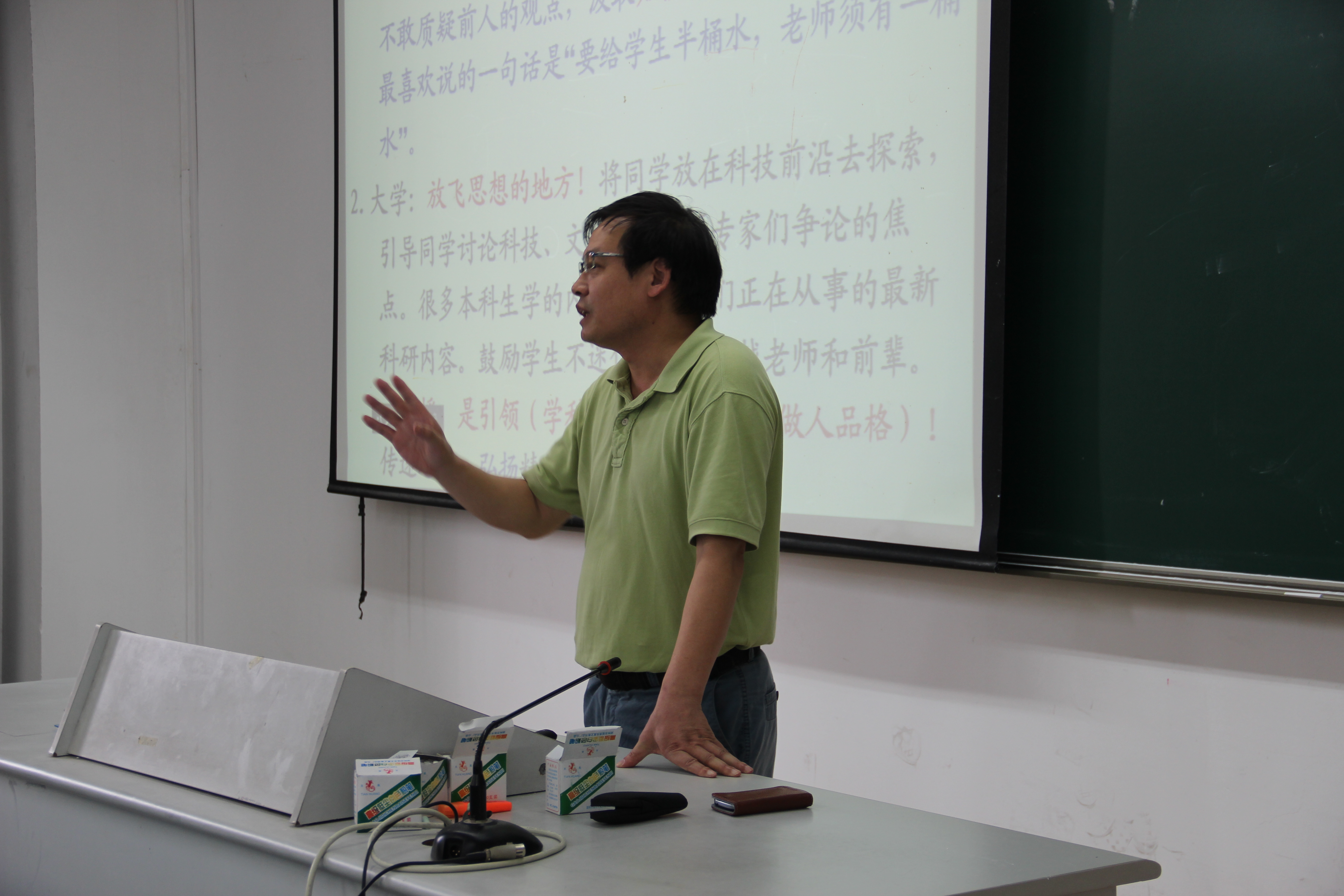 章鹏飞教授对大学教育与化学专业前景作详细介绍和化学131班主任韦斯林博士对师范生就业指导进行概述。