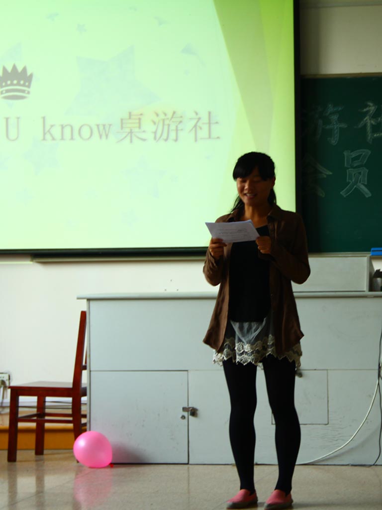 活动于14:15正式开始。首先社长朱熠南上台致辞,他简单地介绍了U-know桌游社的性质和成功举办的一些精彩活动,让会员们更加了解桌游社。随后在主持人的带动下,妙趣横生的游戏世界正式拉开序幕。面对着象棋大逃杀、抢椅子、心有灵犀和猜数字等游戏,会员们跃跃欲试,积极参加。最后在一片欢声笑语中,U-know桌游社的动员大会圆满落幕。