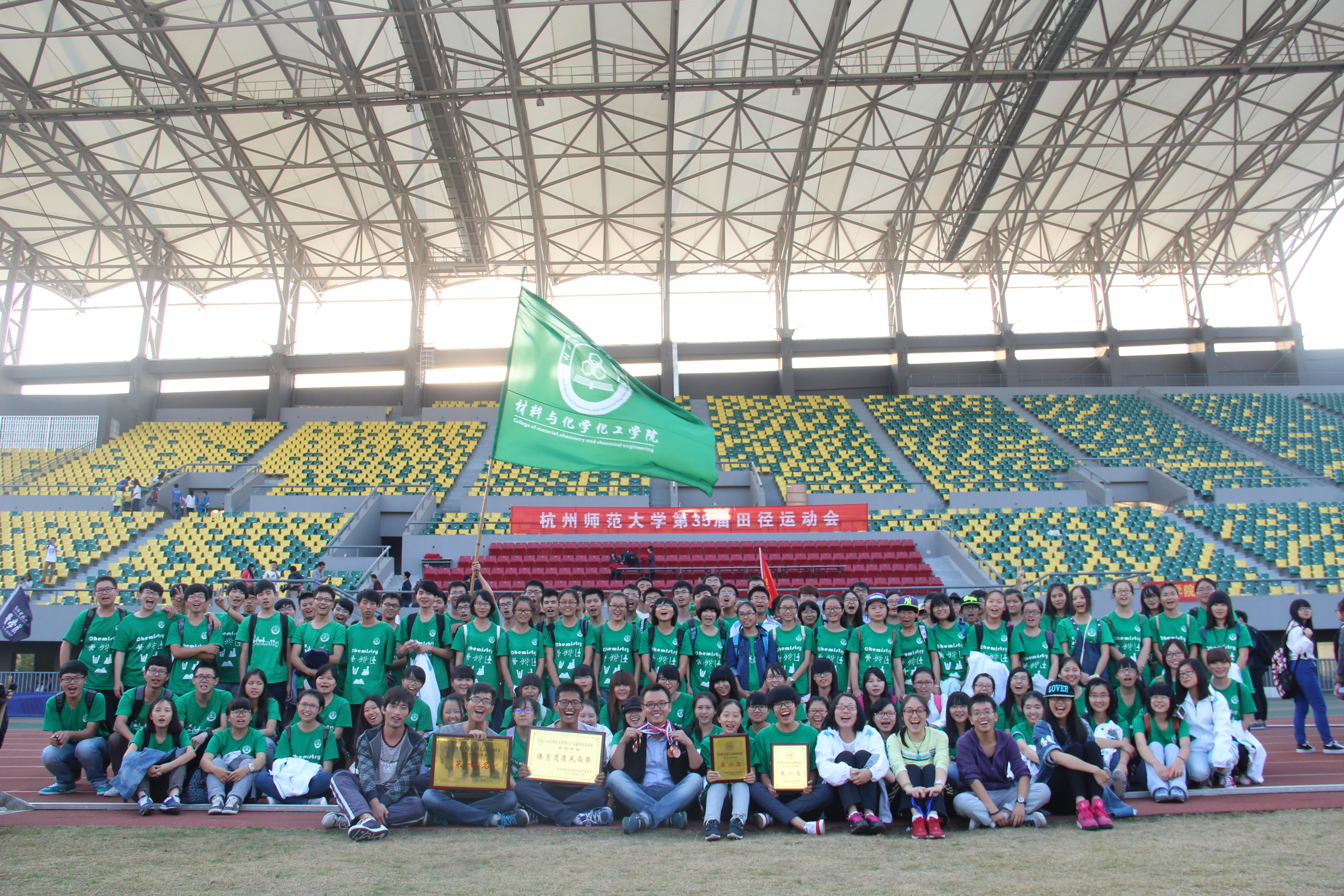 也取得了不错的成绩:林文强勇夺三级跳远冠军,陆金波斩获100米、200米的第三名,陈佳莹夺得跳高第四名,张良400米第五名,陈玲标枪第八名,张丁赟铅球第八名,宋佳琴三级跳第八名,吴苏婷200米第八名,谷雨110米栏第八名,男女4乘400米接力第七名,女子4乘100米第五名等。每一个运动健儿的面庞,都将一直被材化师生铭记,他们是材化的骄傲!