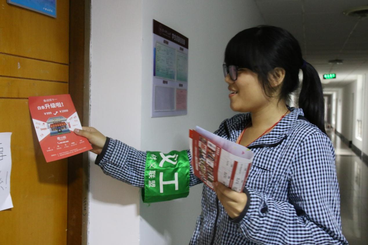 义工联盟在寝室楼展开寝室传单活动。大师兄影视