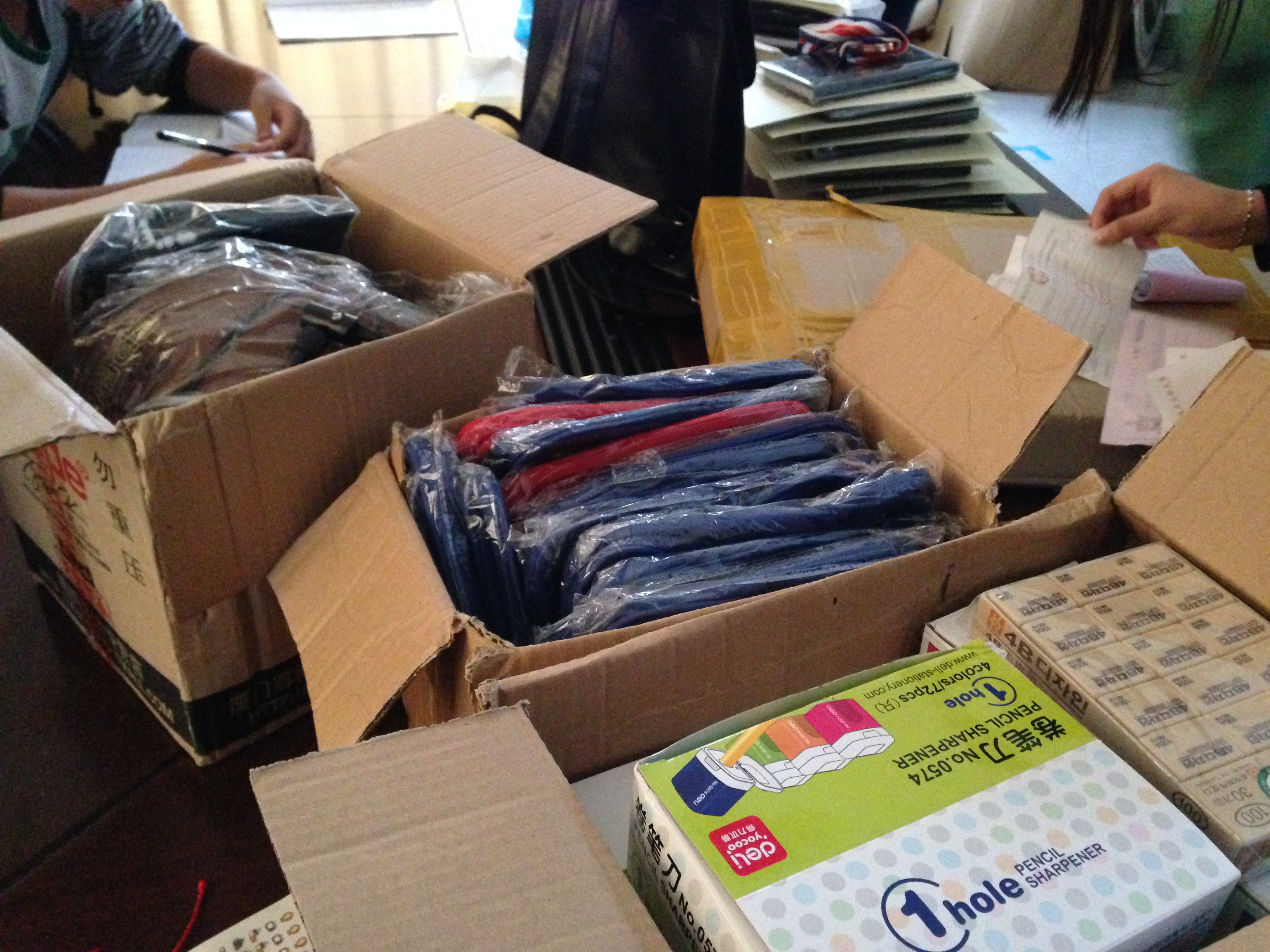 据悉,早在9月14号,青协志愿者们就开始号召材化学生通过捐献军训服来为内蒙古小朋友送爱心。期间同学们反响热烈,积极捐赠。青协通过卖军训服所得的钱,购买了这些文具用品和体育器材。(文/潘舒蕾 图/严天露)