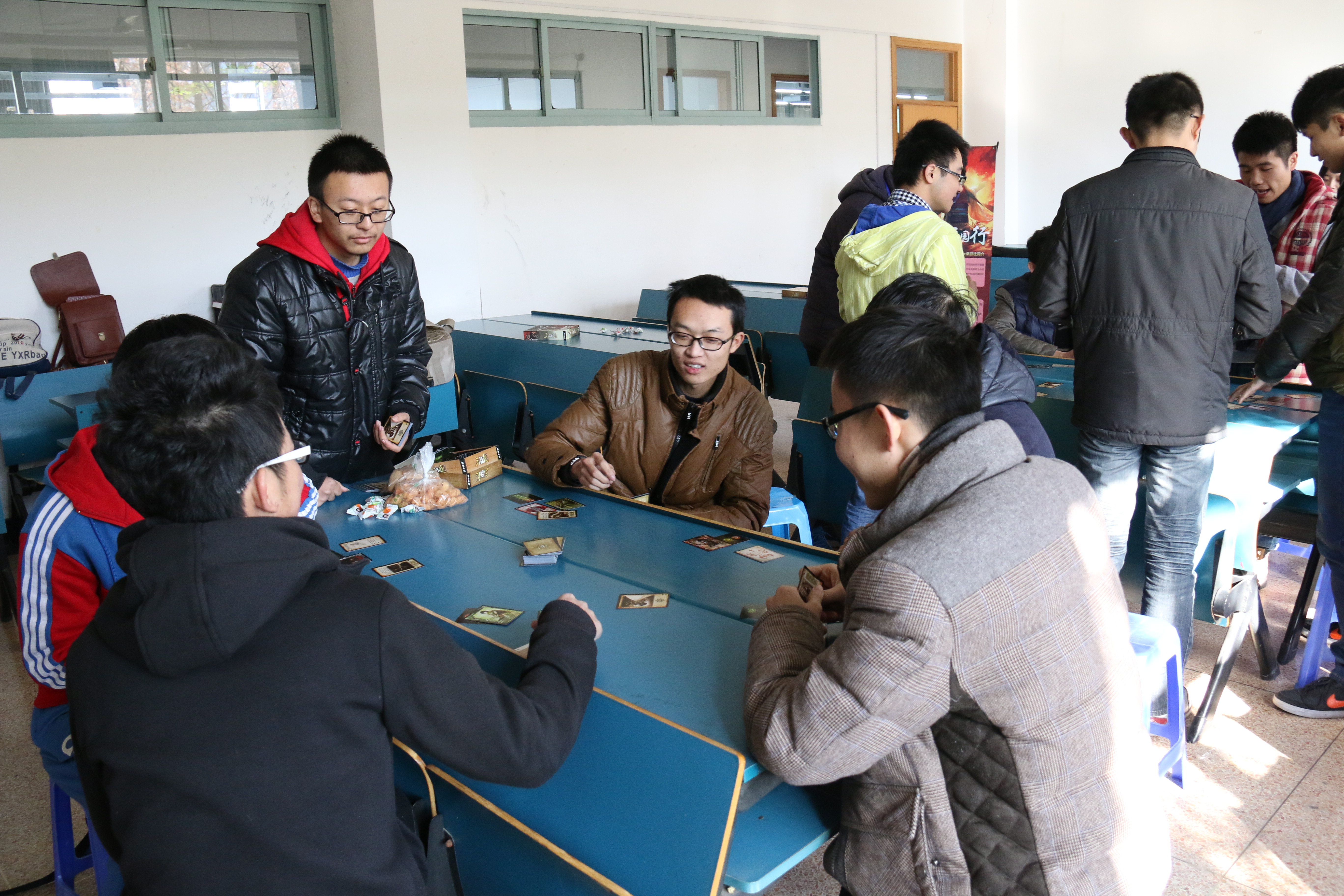 U-know桌游社举办的“兵临材化,一触即发”校园三国杀之五人身份场比赛在A楼215教室举行。一番激烈“战争”后,徐浩,县云龙,胡佳滨三人分别获得冠、亚、季军。