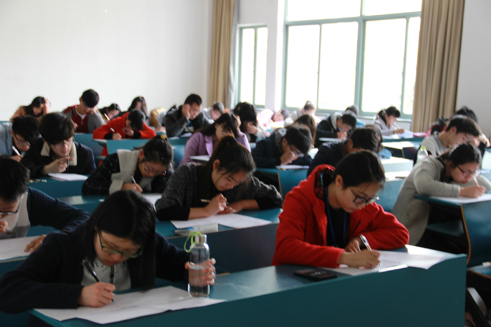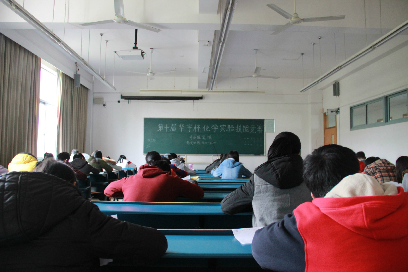 本次专业组初赛主要是以笔试的方式检测专业组学生对化学实验技能的熟悉程度和对理论知识的掌握程度。考试开始前十分钟,同学们按要求进入考场并有序入座。考试于14点准时开始,偌大的教室只剩下“刷刷”的写字声,同学们都竭尽全力,希望发挥出自己的最好水平。