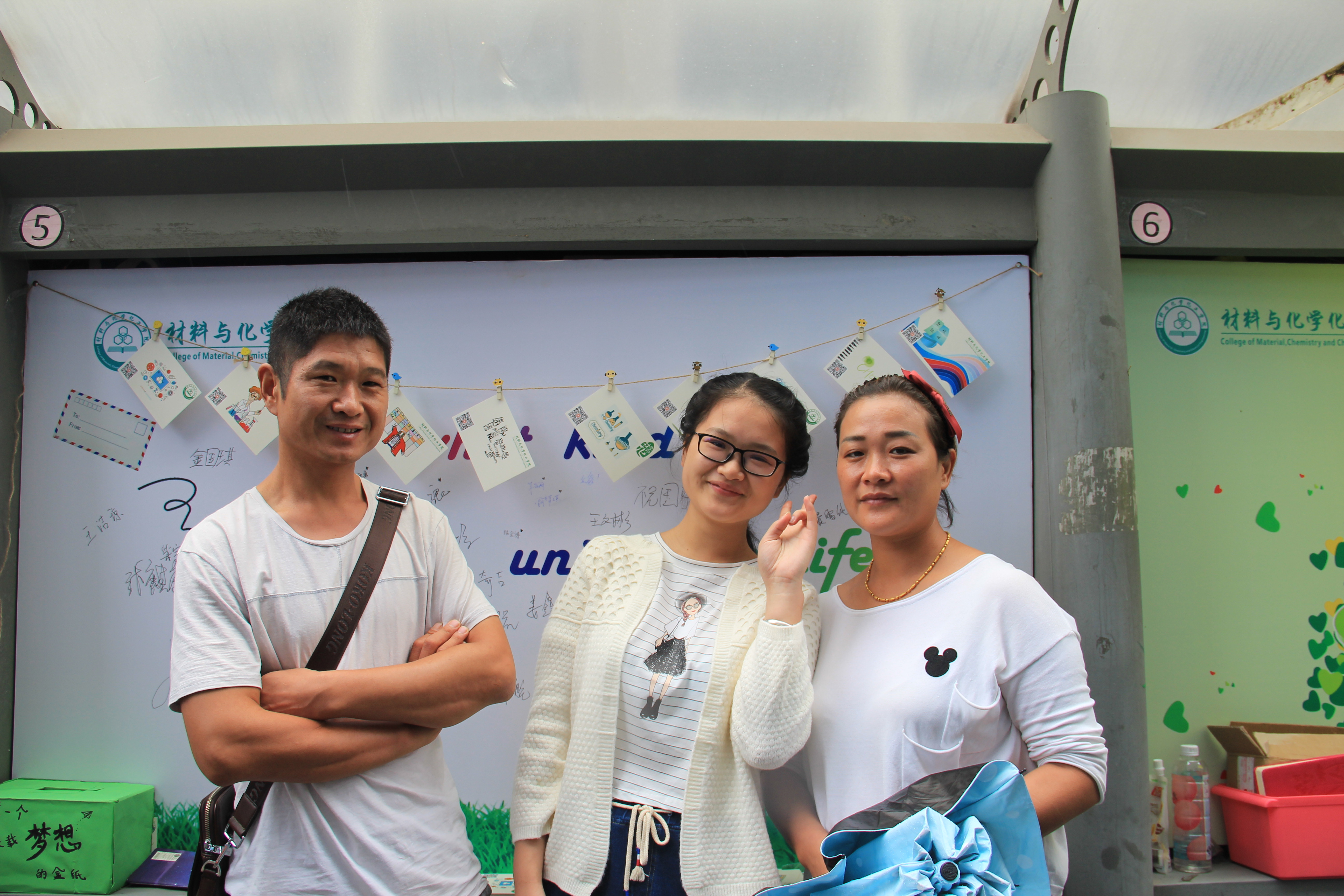 材化绿遍布学校大门、生活区正侧门、报道点、宣传栏、宿舍楼下,各位志愿者各司其职。有些志愿者帮助新生提拿行李,从学校大门到宿舍楼下来回十几趟也不喊累;有些志愿者在家长接待处与新生家长进行沟通,从各方面向他们介绍学院的情况;有些志愿者在海报栏前对学院丰富多彩的学习生活进行宣传,并引导新生在学院海报前留下了他们的签名与合影。
