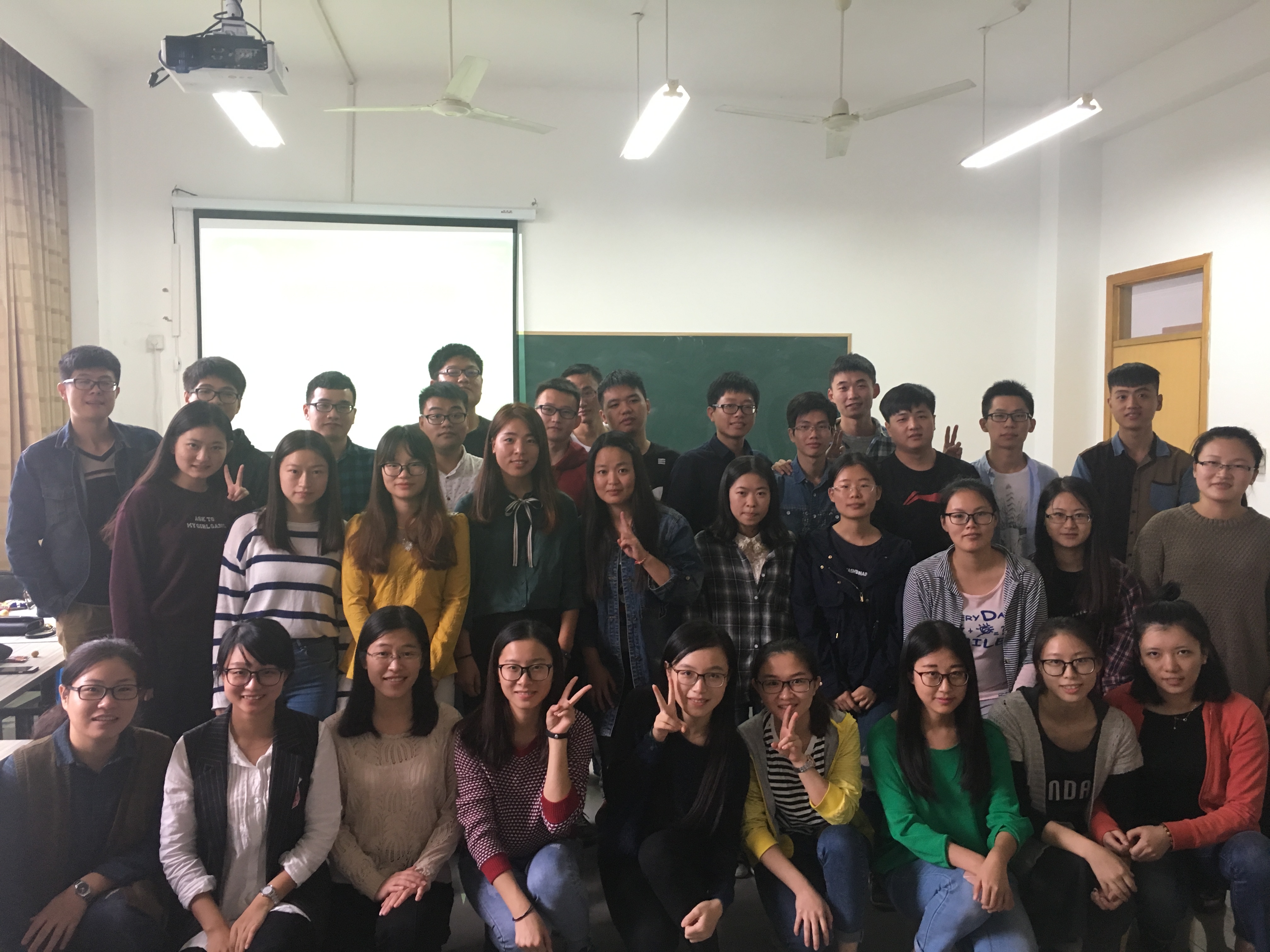 本次活动分为四个部分。首先是同学间的自我介绍,包括了基本信息以及爱好;其次是老生代表发言,研三的林翠玲师姐与大家分享了她的研究生生活,并且给新同学们带来了一些好的建议;再者是新生班长的推选,活动推选出一名男班长一名女班长;最后,集体学唱大师兄影视 校歌。