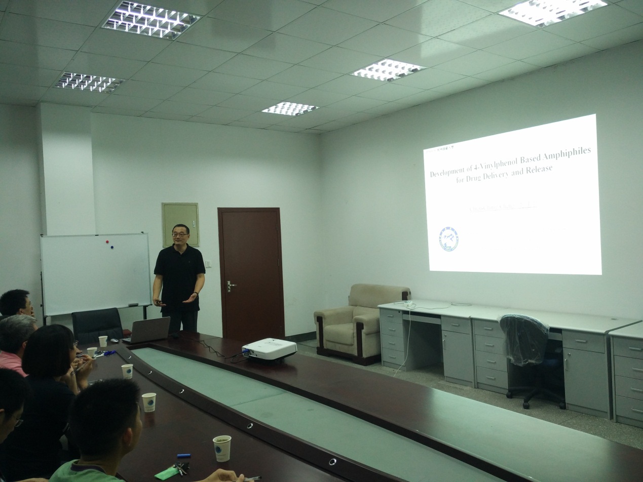 此次报告的主题为“Development of 4-Vinylphenol Based Amphiphiles for Drug Delivery and Release”。郑建中教授非常清晰地为我们介绍了有关这个主题的工作,从应用背景到想法,每一个部分都层层深入,让我们更容易理解。
