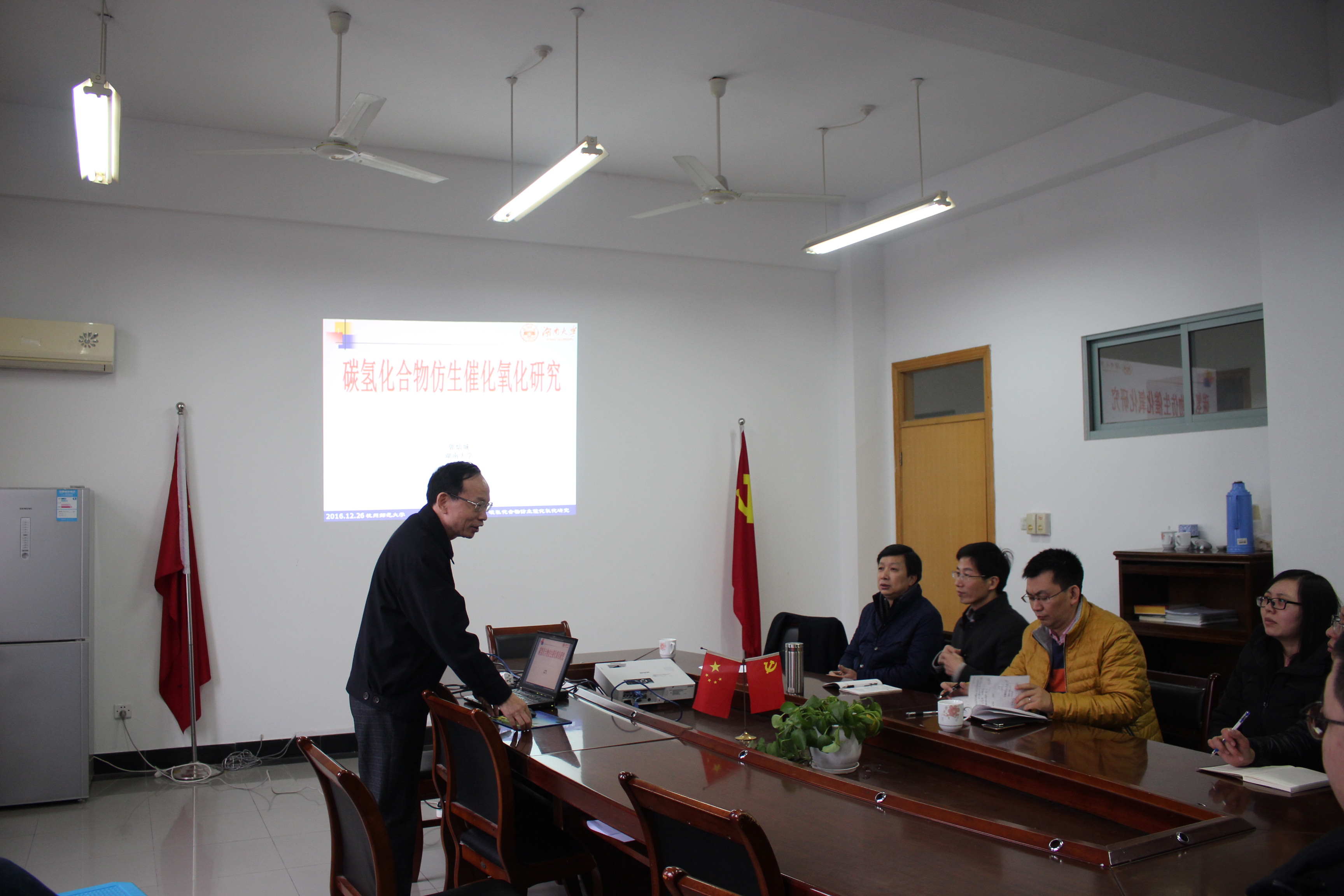 12月26日下午2:00,湖南大学化学化工学院二级教授、博士生导师、先进催化教育部工程研究中心主任,享受国务院政府特殊津贴专家郭灿城教授受邀在D-408室作了题为《碳氢化合物仿生催化氧化研究》的报告。大师兄影视 教师、研究生参加了报告会。