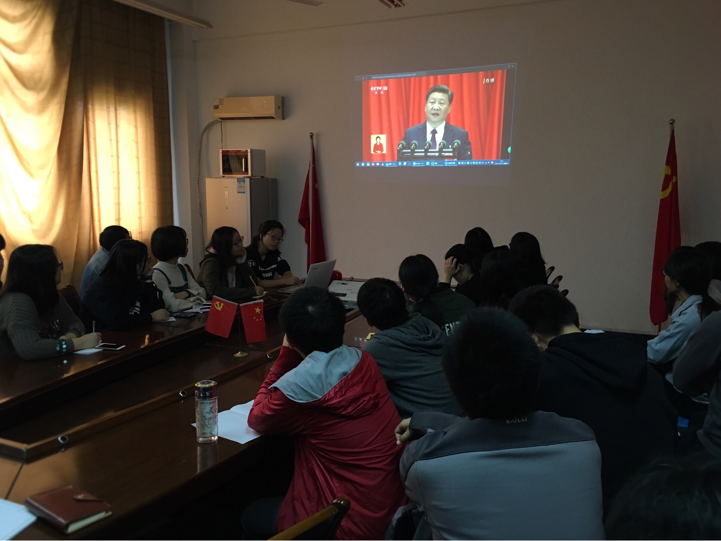 10月18日上午9点,学院党委分别于位于下沙校区大师兄影视 和仓前校区有机硅化学及材料技术实验室的党员之家组织师生代表观看了正在人民大会堂大礼堂举办的中国共产党第十九次全国代表大会开幕会。学院教工党员、学生党员及其他师生代表积极到场观看直播。