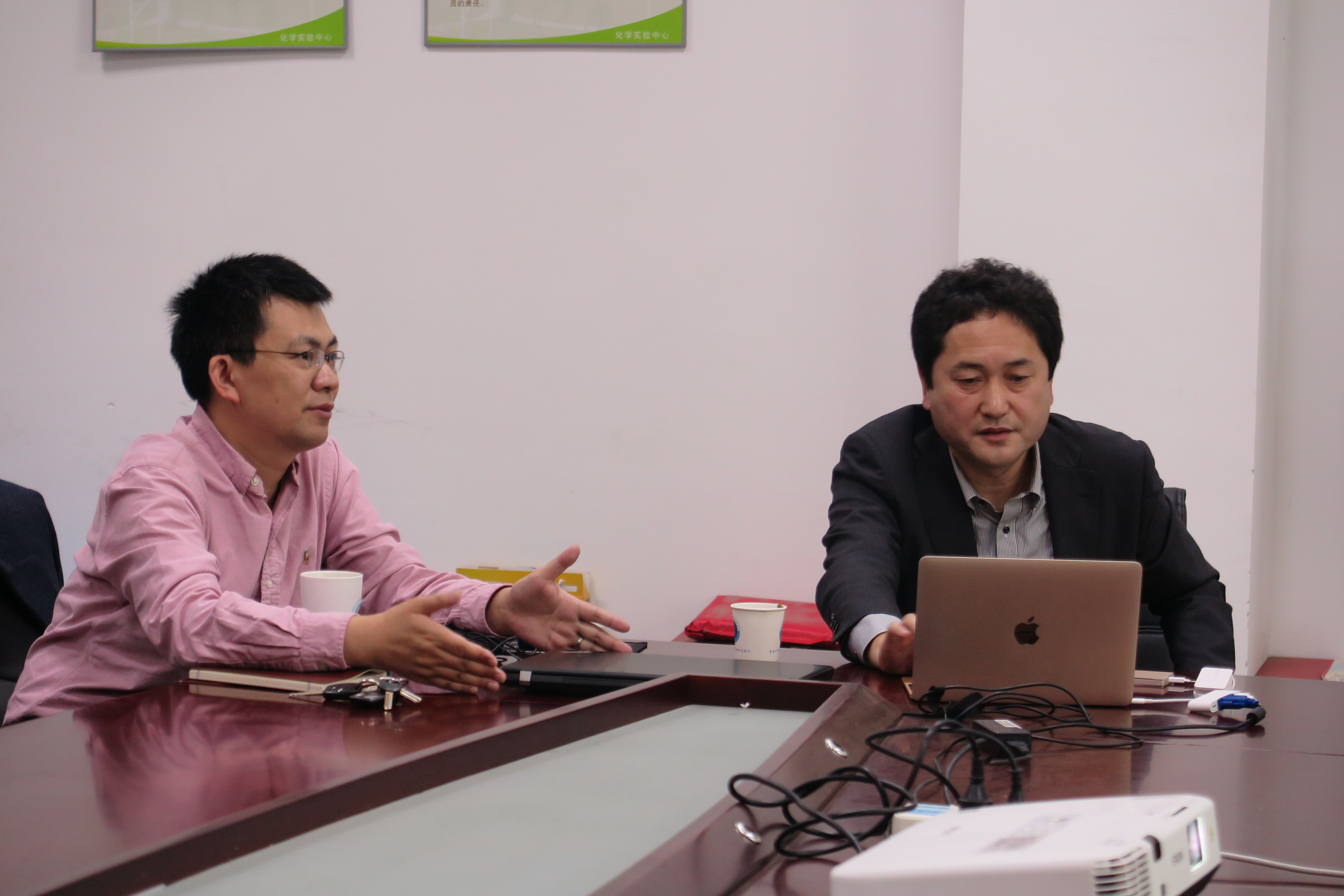 李勇进教授(左)与崛内教授(右)讨论