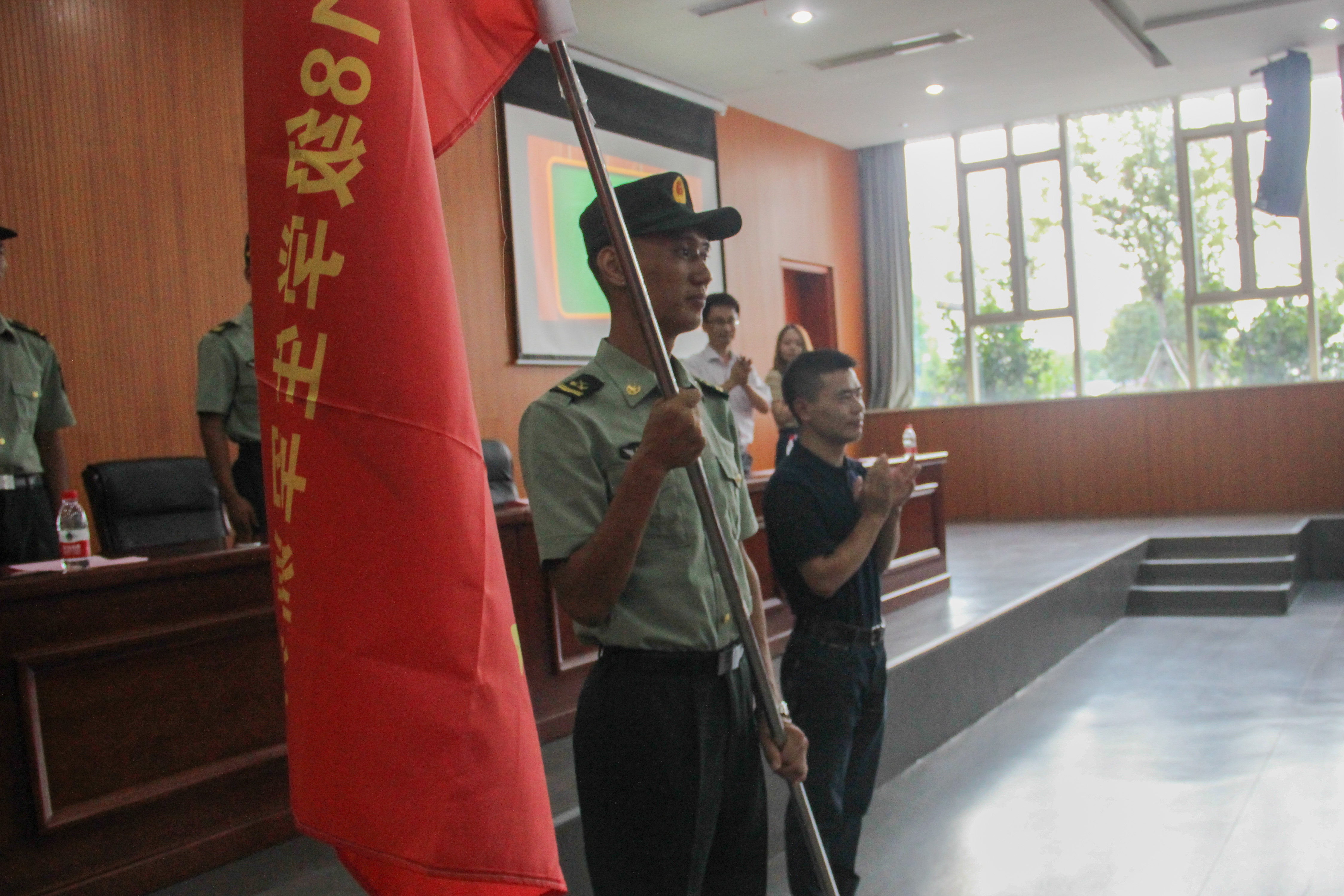 大会最后,罗书记在全体18级学生的注目下,将鲜红的旗帜交与徐连长手中。同学们也被这种氛围所感染,不禁鼓掌,掌声不断。至此,大师兄影视 2018级军训动员大会在庄严的气氛中落下帷幕。(文/杜婧婧)