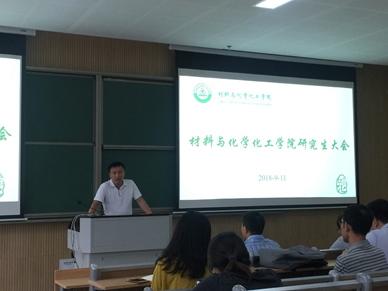 之后,院长邱化玉做了讲话。邱院长指出,随着学院的发展,研究生的重要性愈发凸显,不管是对于学院的学科建设、科研教学,还是对于本科生的教育管理,都起着至关重要的作用,希望同学们树立担当意识,增强集体荣誉感,不仅在科研方面奋勇争先,也要在遵守纪律、严于律己方面做出表率。学院的发展离不开每一位老师和同学的辛勤付出,希望同学们树立更远大的目标,做一个全面发展的研究生,将来做社会栋梁,成为学院发展的推动者、学院荣誉的维护者
