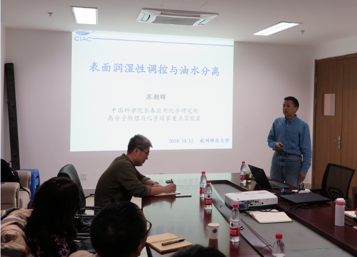 2018年10月12日下午3:00,中国科学院长春应用化学研究所研究员苏朝晖应大师兄影视 李勇进教授的热情邀请,为材化师生做了题为“表面润湿性调控与油水分离”的学术报告。