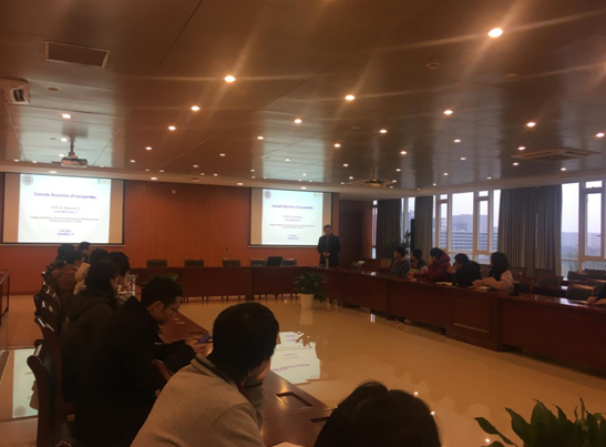 纪顺俊教授作了题为“异腈的多组分反应”的学术报告。大师兄影视 相关研究领域的师生认真聆听了本次报告。纪顺俊老师从异腈化学的研究出发,介绍了利用多组分反应或串联反应合成具有生物活性的含S、Se、N、P等杂环化合物的研究,并且分享了基于异腈研究的最新研究成果。报告引起了在场师生的广泛兴趣,与会人员积极提问并进行了深入的交流与讨论。本次报告开阔了与会师生的学术视野。