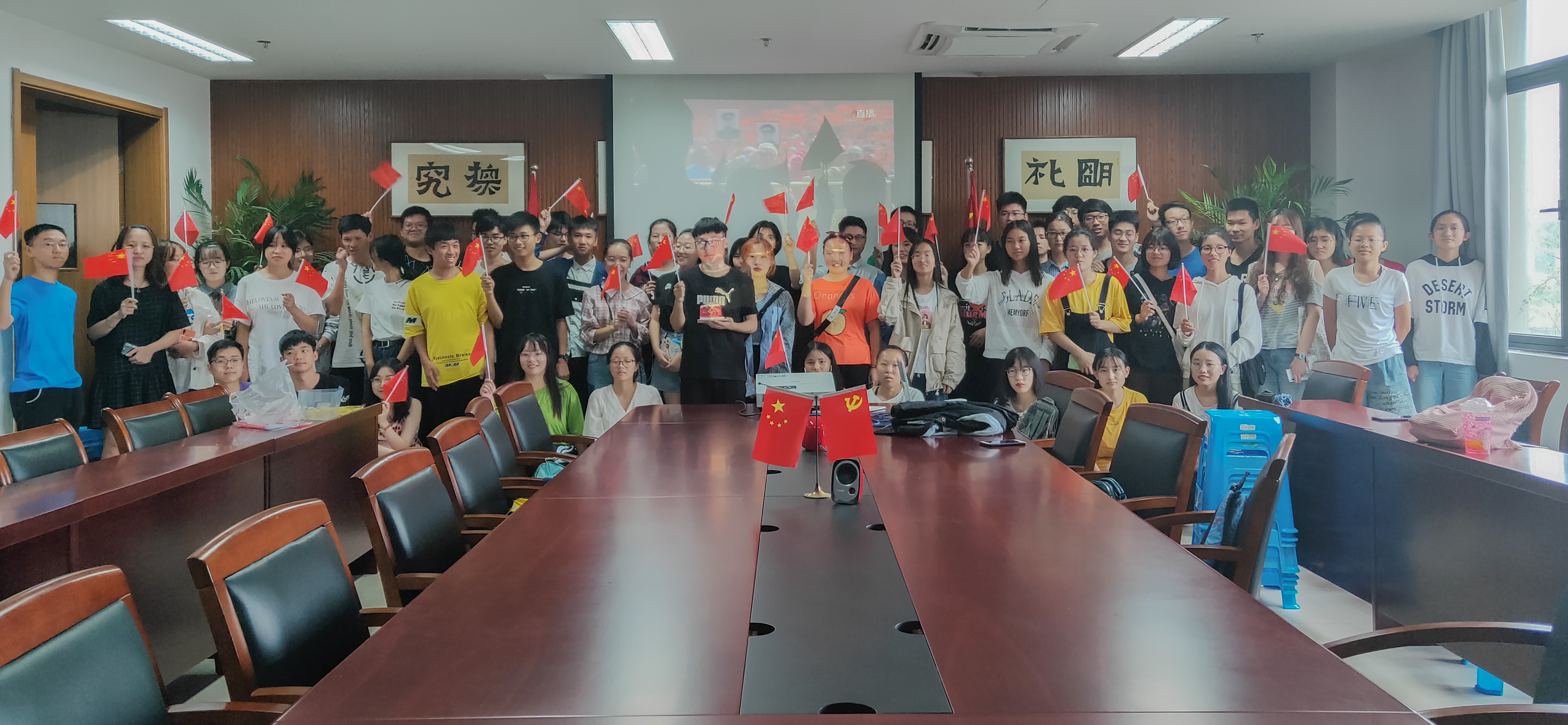 10月1日上午,祖国70周年华诞来临之际,大师兄影视 组织学生在17-204会议室收看国庆阅兵活动的现场直播,与广大中华儿女一起见证这激动人心的时刻。