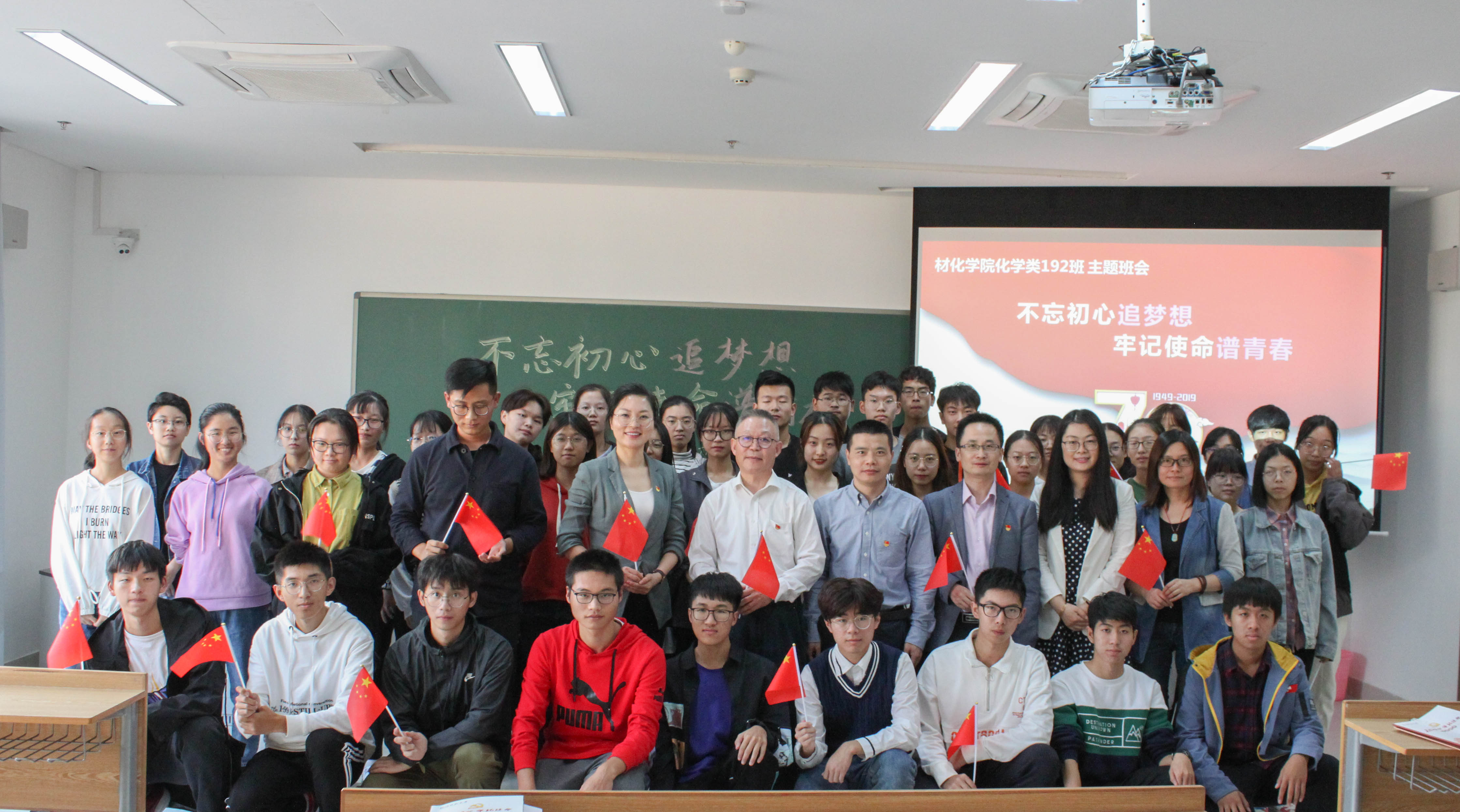 10月16日15:30,化学类192班于勤园6-205顺利举行“不忘初心追梦想,牢记使命谱青春”主题班会。校党委委员、统战部部长袁成毅,校学工部副部长、学生处副处长翁灵丽,院党委书记罗来庚,党委副书记、纪委书记江齐里,化学类192班班主任李云霞老师及大师兄影视 辅导员白芸、韩秉峻老师参加了此次班会活动。