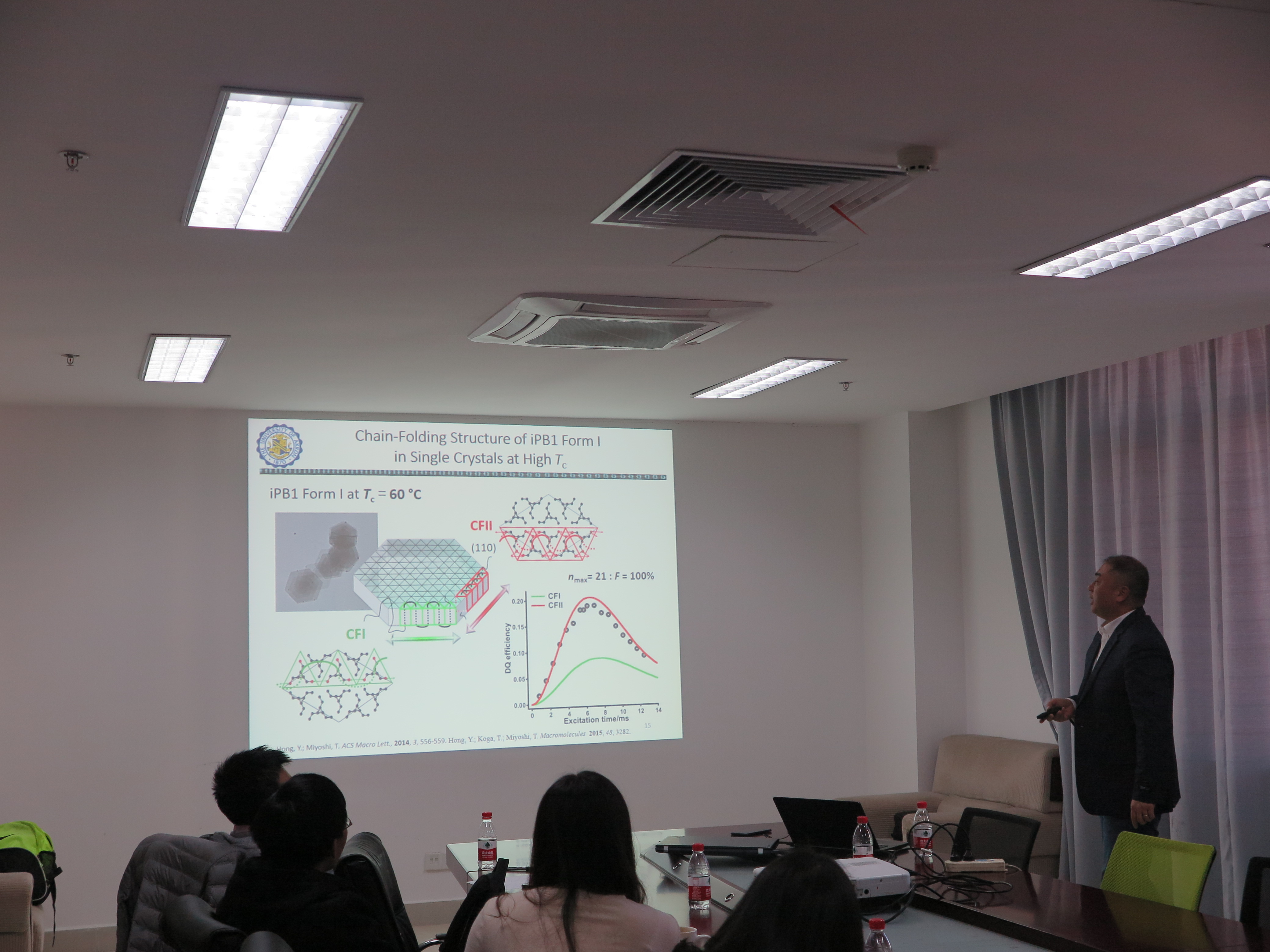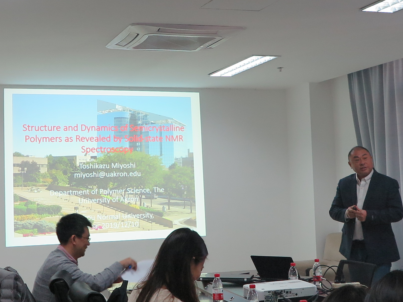 2019年12月10日上午10:00,应大师兄影视 李勇进教授的邀请,阿克隆大学Toshikazu Miyoshi教授来大师兄影视 作了题为“Structure and Molecular Dynamics of Semicrystalline Polymers by Solidd-state NMR”的精彩报告。学院相关专业30余名师生聆听了讲座。