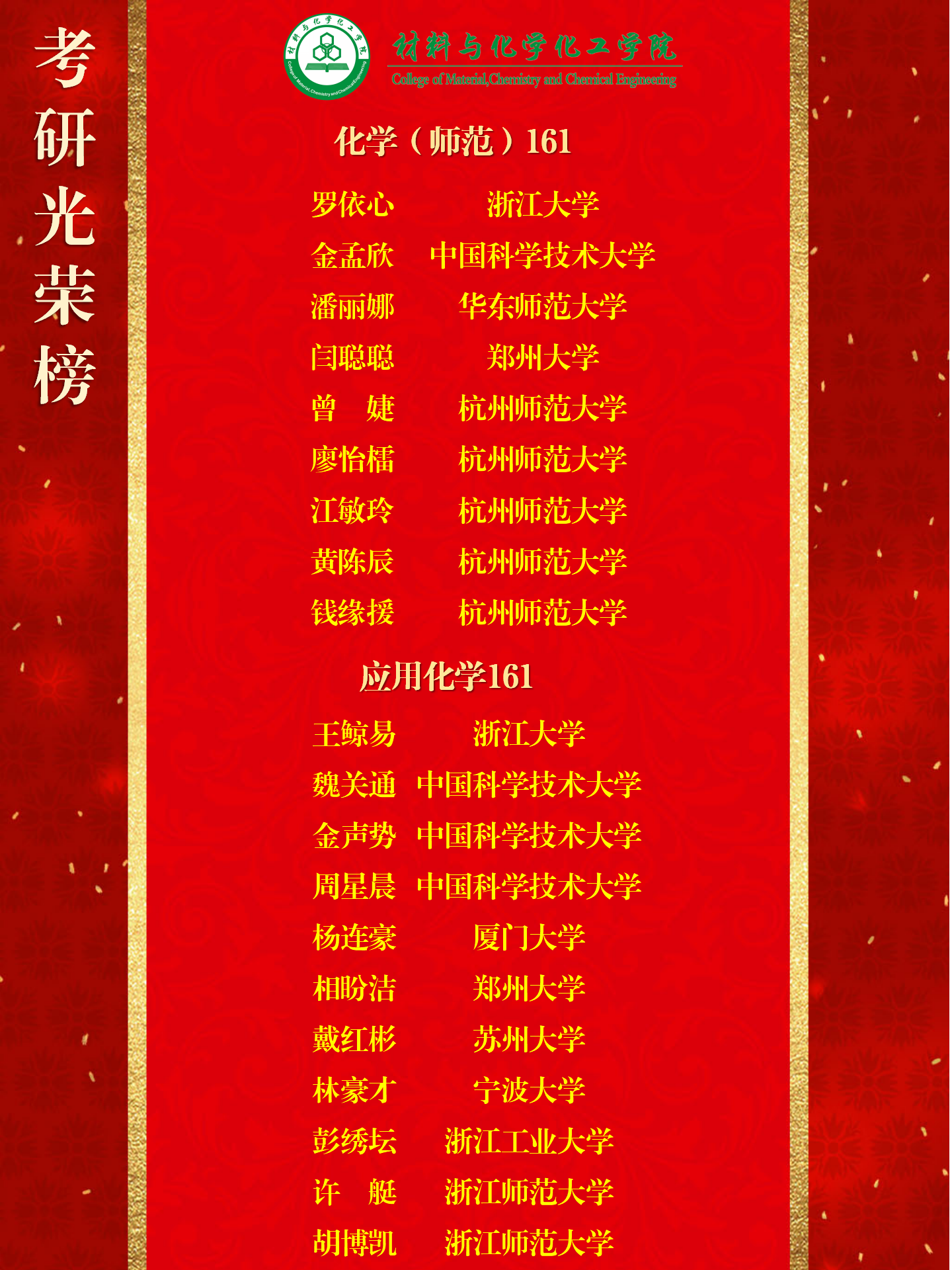 2020届学子在研究生考试中取得的优异成绩,离不开学院教师的悉心教导,离不开学院科研助理工程、每日一讲项目等日常育人工作的开展,更离不开材化人孜孜求学、不懈探索的求知态度。今后的工作当中,学院将继续秉持育人为本的理念,进一步促进毕业生升学就业,提升人才培养质量,力争在毕业生工作中取得更好的成绩。