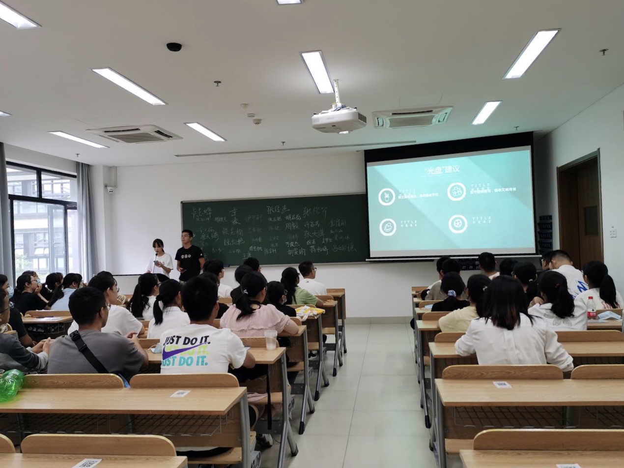 202班班长黄雨欣同学则通过分享自己收集的有关“光盘行动”的资料,帮助同学们更加清晰地了解了“光盘行动”的由来与意义,并向班级同学发出倡议,光盘行动不是一阵风,光盘行动永远没有休止符,作为新时期的大学生应该倡导勤俭节约的良好风尚,让餐桌上盛开更加绚丽的文明之花。