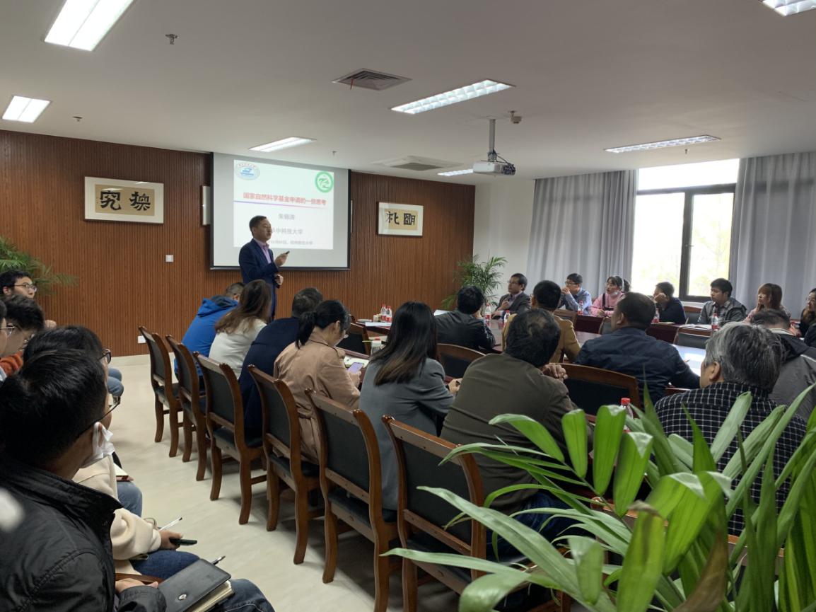朱锦涛教授报告的题目为《国家自然科学基金申请的一些思考》。朱教授首先与老师们分享了国家自然科学基金的申报流程,建议大家在申请基金时候,多站在评审者的角度,以批判的态度和谦逊的心态,尽可能打磨好自己的申请书,提高基金申请书的质量。他重点强调了申请书质量的重要性,尤其是申请青年和面上基金。接着,他结合自身多年申报经验,就为什么申报国家自然科学基金、未获批的主要原因、评审专家对申请书主要关注的要素、国家自然科学基金批准的工作流程、基金申请书选题、各部分撰写的侧重点和注意事项以及申请书各部分的联系和区别等方面进行了详细的讲解。最后,他对国家基金申请给出了非常有针对性的建议,强调国家基金的申报要及早谋划和准备,打磨好申请书。现场老师围绕基金申报过程中的常见问题进行了咨询,朱教授给予了耐心细致的解答。