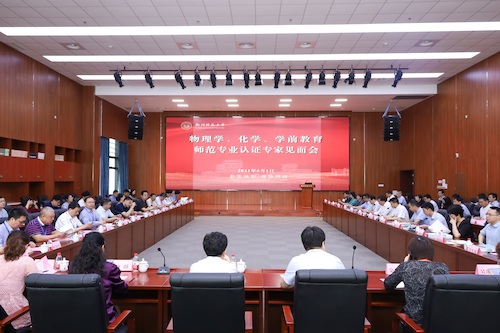 6月1日上午,学校召开物理学、化学、学前教育师范专业认证专家见面会。以安徽师范大学原校长王伦教授、南京师范大学教师教育学院院长叶忠教授、东北师范大学高教所所长李广平教授为组长的专家组一行19人来校,对物理学、化学、学前教育专业进行现场考察认证。