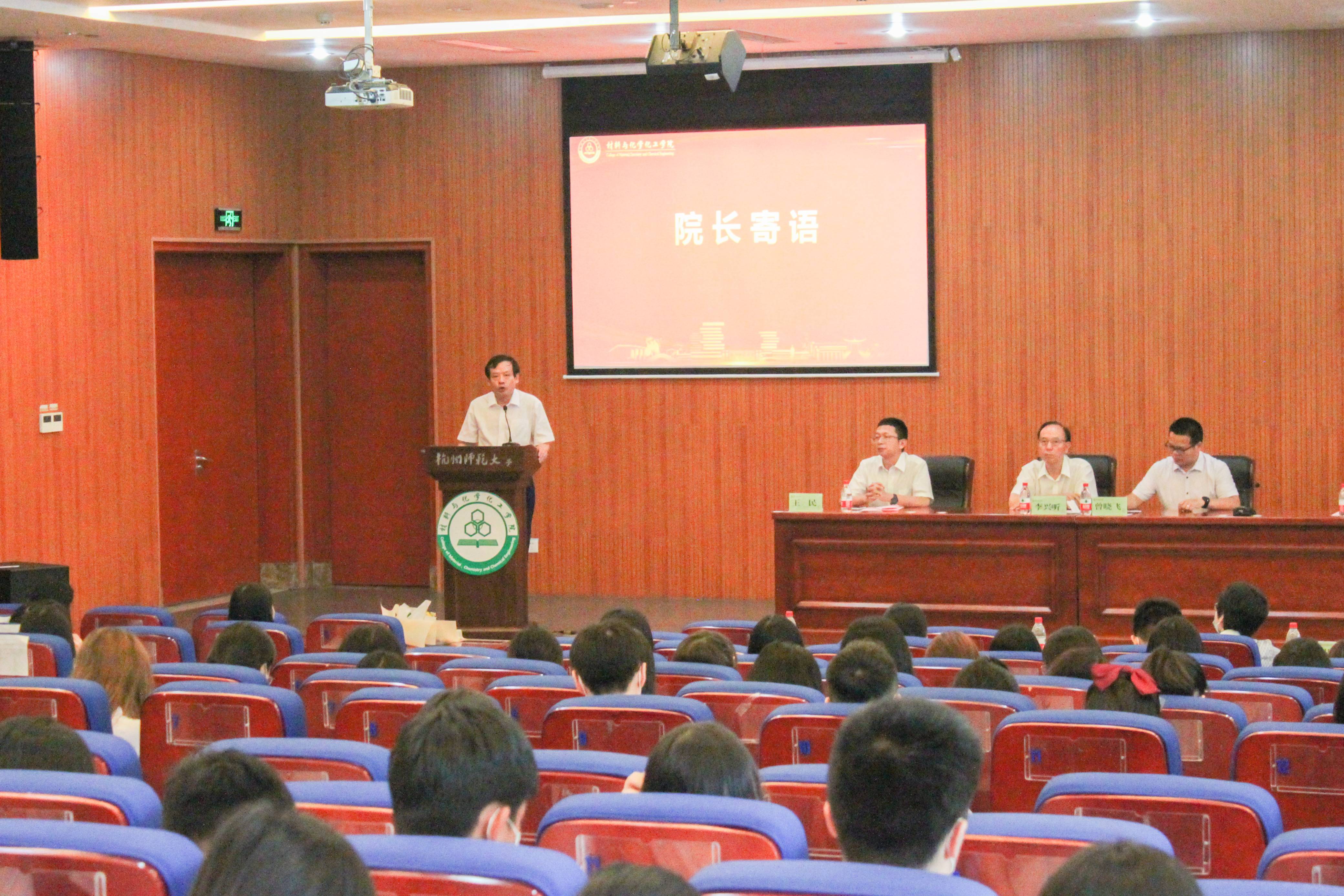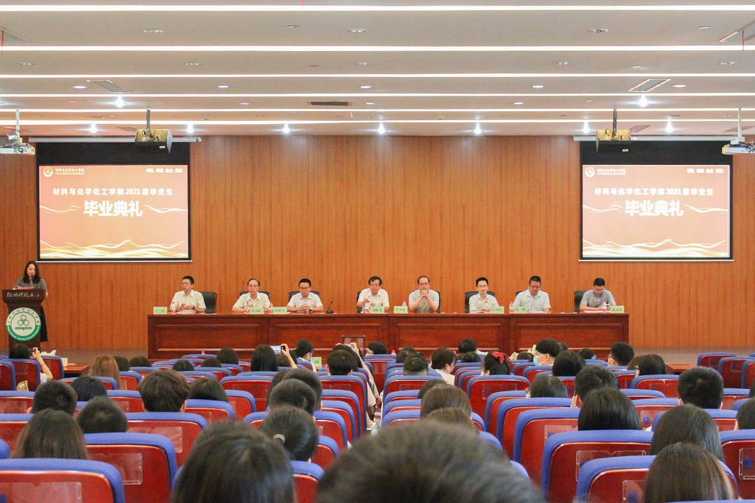 6月29日9:30,学院于仓前校区学术交流中心A118报告厅隆重举办2021届学生毕业典礼。院长章鹏飞,原党委书记李兴听,副院长尹守春、曾晓飞,党委副书记、纪委书记江齐里,院长助理、工程系主任、应化173班班主任高鹏,化学系主任、化学(实验)171班班主任王民,教授代表、中国青年化学家元素周期表代言人黄又举,综合办公室主任黄小兰,教务科科长丁琰,高分子171班班主任周箭,制药171班班主任曹君,化学(师范)171班班主任刘训高,应化171班班主任黄银华,学工办主任白芸,辅导员韩秉峻、索南拉巴应邀出席。