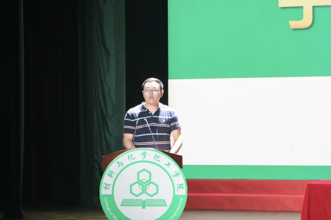 新生班主任代表于双江博士在讲话中代表全体班主任老师对新同学的到来表示欢迎,并对全体新生提出尽快适应新环境,学会新的学习方法;尽快明确奋斗目标,朝着目标前进;学会做人,学会适应,敢于面对全新的环境的期望,并表示班主任老师会一路陪伴在同学们身边,做大家成长路上的忠实伙伴。