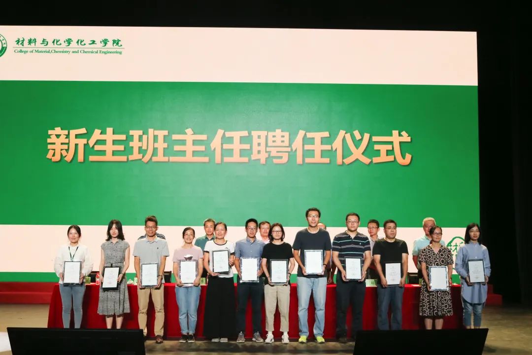 主席台领导向新聘任的全体2021级新生班主任颁发聘书。