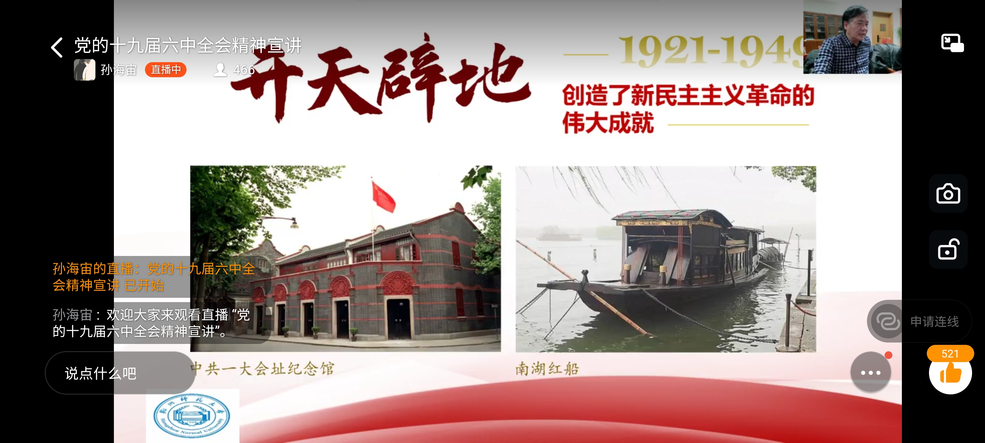随后余教授紧扣浙江实际,讲述了浙江籍知识分子在党的成立、发展过程中做出的突出贡献,也强调了我校前身“浙江一师”的师生在党的发展过程中留下了不可磨灭的痕迹。余教授指出,党的百年奋斗勾勒出中华民族伟大复兴的光明蓝图,绘制出人类发展史上的壮美画卷。