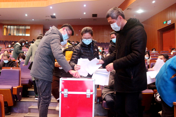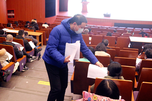 学校组织部工作人员发放考核测评表