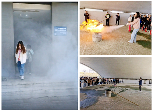 本次演练包括实验楼内疏散演习和灭火演练两个阶段。通过安全疏散的实战演练,使全体师生员工增强安全意识,掌握现场逃生的技能。通过灭火实操演练,使大家熟悉灭火器,并且可以在紧急时刻较为熟练地使用,以期具备应对初期火灾的消防能力。首先是在保卫处的安排下燃放了烟饼,模拟火灾情形,22号实验楼内的师生听到火警报警声后,迅速安全疏散到楼下登高区并进行人数的统计汇报。期间各楼层安全引导员在火警后快速进入岗位并通知楼宇内人员,引导疏散并进一步确认现场无人员滞留。其次,在人员集中后学院党委副书记管庆江代表学院和演练领导小组总结了疏散演练中的表现并对灭火演练和往后的日常安全意识对学生提出了要求;保卫处方水平对师生演练过程进行了具体点评;实验室与设备管理处张卫军强调了安全意识和实验室的安全规范的重要性。最后在保卫处老师们的讲解与示范后,每位同学亲自体验了灭火器的使用,并在现场签署了消防安全告知书。