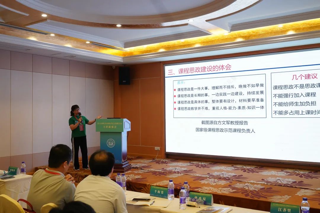 曾秀琼研究员做了“课程思政在无机及分析化学类实验教学中的探索与实践”的报告,明确指出了重塑实验教学内容应以实现课程思政为靶心,从课程细节入手,结合社会热点,并以线上线下相结合的方式开展,比如通过蓝印文化设计大赛,实现“化学+传统文化”的价值观引领的实验教学,引导学生构建积极向上的价值观和赤诚的爱国情怀。