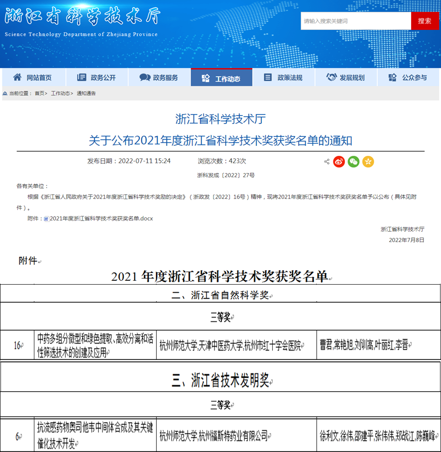 链接:浙江省科学技术厅 关于公布2021年度浙江省科学技术奖获奖名单的通知 //kjt.zj.gov.cn/art/2022/7/11/art_1229225203_4950429.html