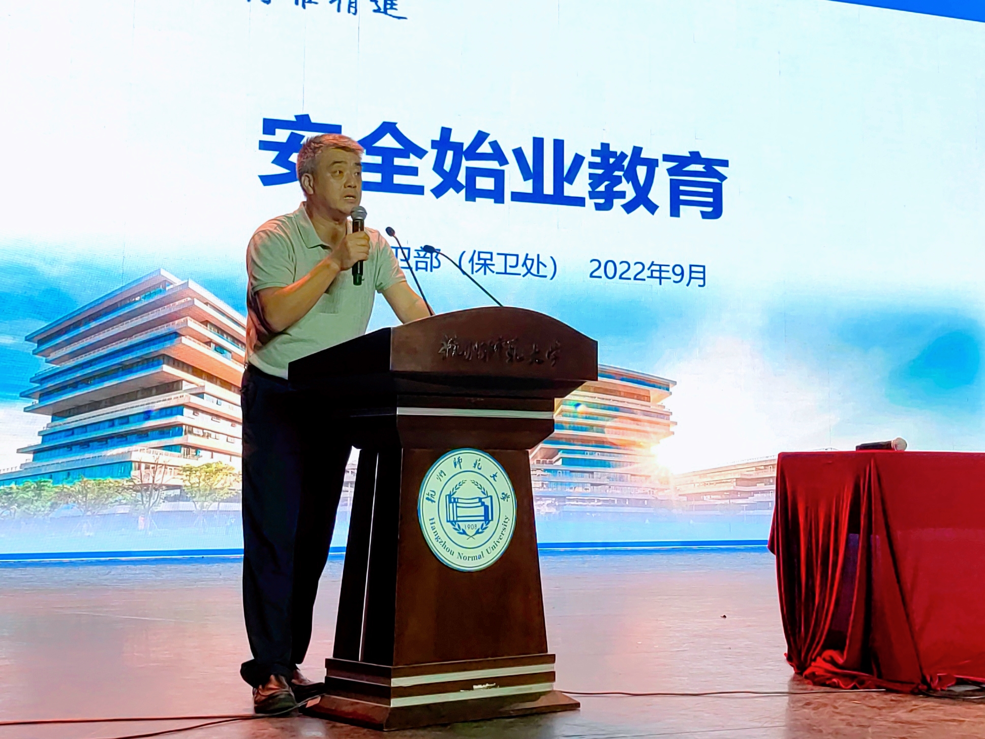 为进一步增强2022级本科新生的安全防范意识和自我安全保护能力,开学第一天的9月1日晚,大师兄影视 邀请校党委保卫部部长、保卫处处长王飞在下沙校区艺术中心1200座开展新生校园安全教育讲座。