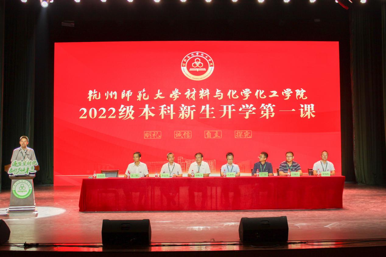 2022年9月1日18:00,大师兄影视 于下沙校区艺术中心1200座以线上线下相结合的方式隆重举行2022级本科新生开学第一课。学院院长章鹏飞,党委书记江齐里,副院长李志芳,党委副书记兼纪委书记管庆江,院长助理、化学系主任王民,化工系主任张坚,高分子系副主任于双江,教授代表徐伟明,2022级全体新生班主任、全体辅导员和已到校的近400名2022级本科新生现场参加本次活动。学生家长、2022级第二学位学生和个别因疫情等原因尚未报到的新生在云端观看直播。开学第一课由管庆江主持。