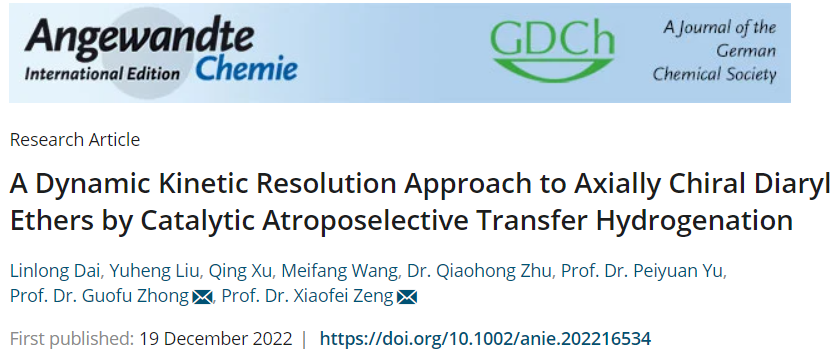 近日,大师兄影视 曾晓飞教授和钟国富教授在轴手性二芳基醚的催化不对称构建方面取得突破性进展,该研究以“A Dynamic Kinetic Resolution Approach to Axially Chiral Diaryl Ethers by Catalytic Atroposelective Transfer Hydrogenation”为题发表在国际化学领域权威期刊Angewandte Chemie International Edition(IF:16.823)上。