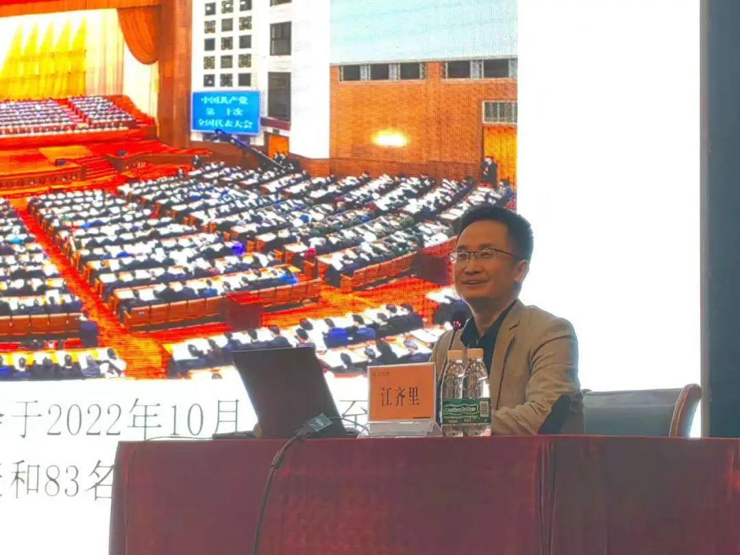 江齐里首先作了题为《奋进新征程,谱写新篇章》的报告,从主题、主要内容和成果等方面全面宣讲了党的二十大精神,为同学们带来了一堂生动的党课。结合个人经历,江书记就同学们“如何读好大学”的问题做出回应。想要读好大学、实现梦想,就应确定目标,明确路径,坚持不懈,以奋斗者姿态过好每一天、做好每一件事,规划好自己的未来。勉励同学们要在求知、做事、为人方面下苦功,全面提升自身综合素质。