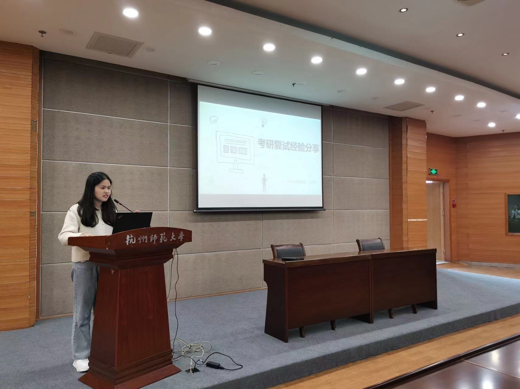 来自外国语学院的金宣慧则从面试的礼仪、着装、专业知识准备、面试中遇到极端问题如何应对、面试后如何联系导师等方面给出了建议。