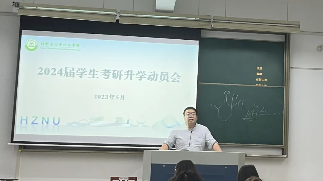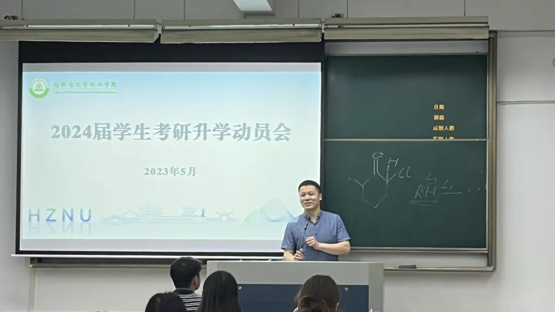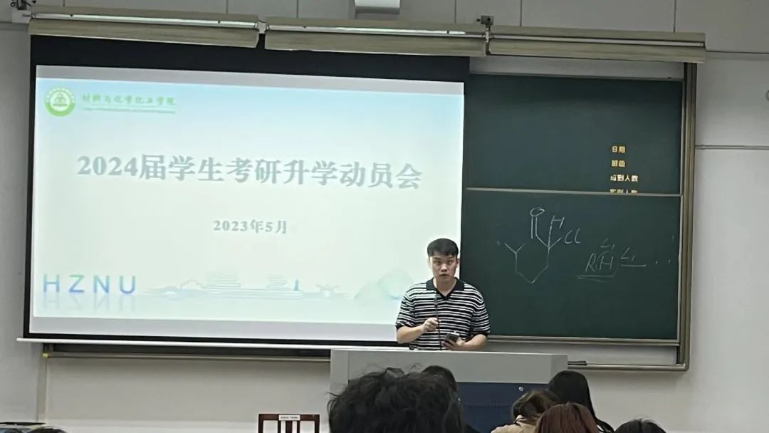 为进一步激发大师兄影视 2024届专升本学生的考研热情,帮助学生深入了解考研相关内容,助其实现考研升学梦,5月17日下午,大师兄影视 在下沙校区B-114召开2024届专升本学生考研升学动员会。学院党委副书记兼纪委书记管庆江、应化222班班主任杨雄发、应化223班班主任尹官武以及4位2023届优秀考研上岸学生代表应邀出席动员会。动员会由分管辅导员任浩浩主持。