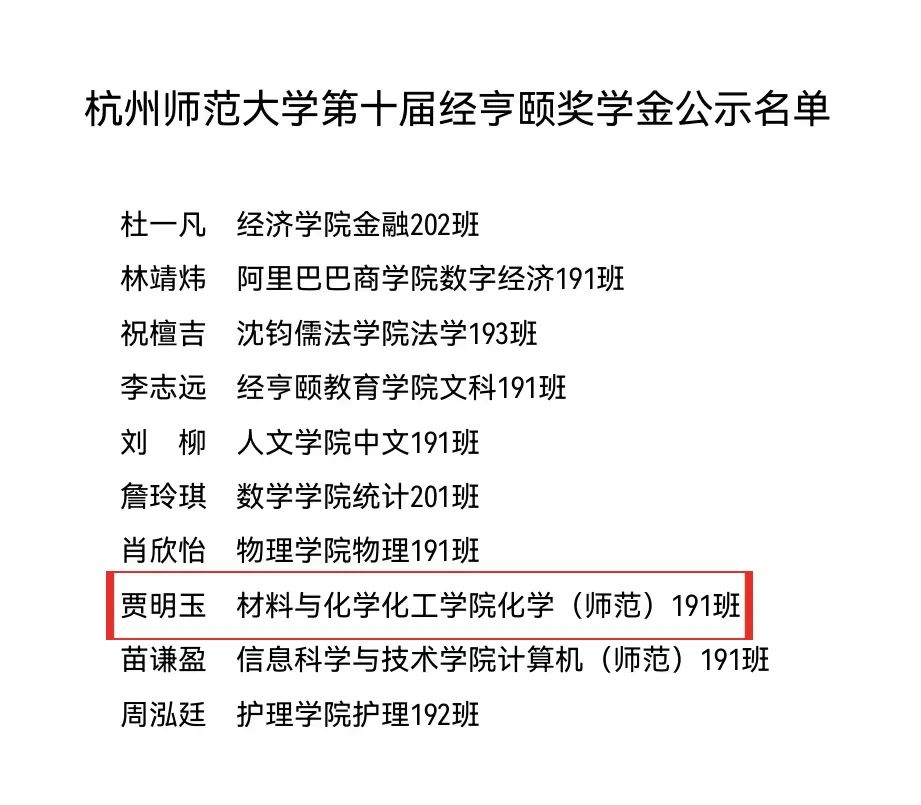 5月25日18时,我校第十一届经亨颐奖学金评选活动在钧儒厅500座(下沙)举行,大师兄影视 化学师范191班的贾明玉同学荣获该奖。