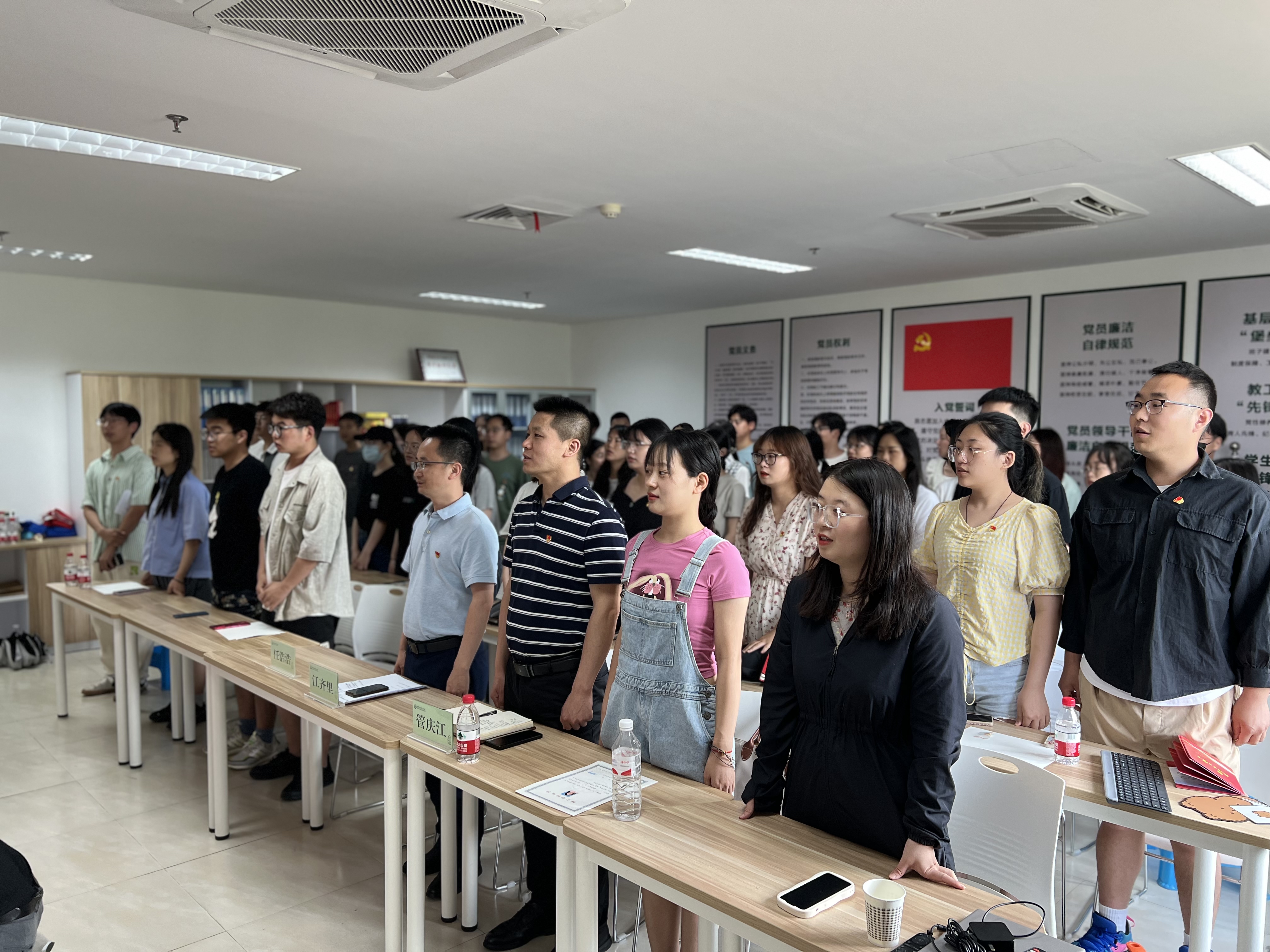 重温入党誓词,牢记入党初心。管庆江带领师生党员面向党旗,紧握右拳,庄严宣誓,重温入党誓词。铿锵有力的誓词彰显了师生党员对党的无限忠诚与热爱,相信他们必将以敢为人先、奋勇争先的气魄奏响新时代材化青年之歌。