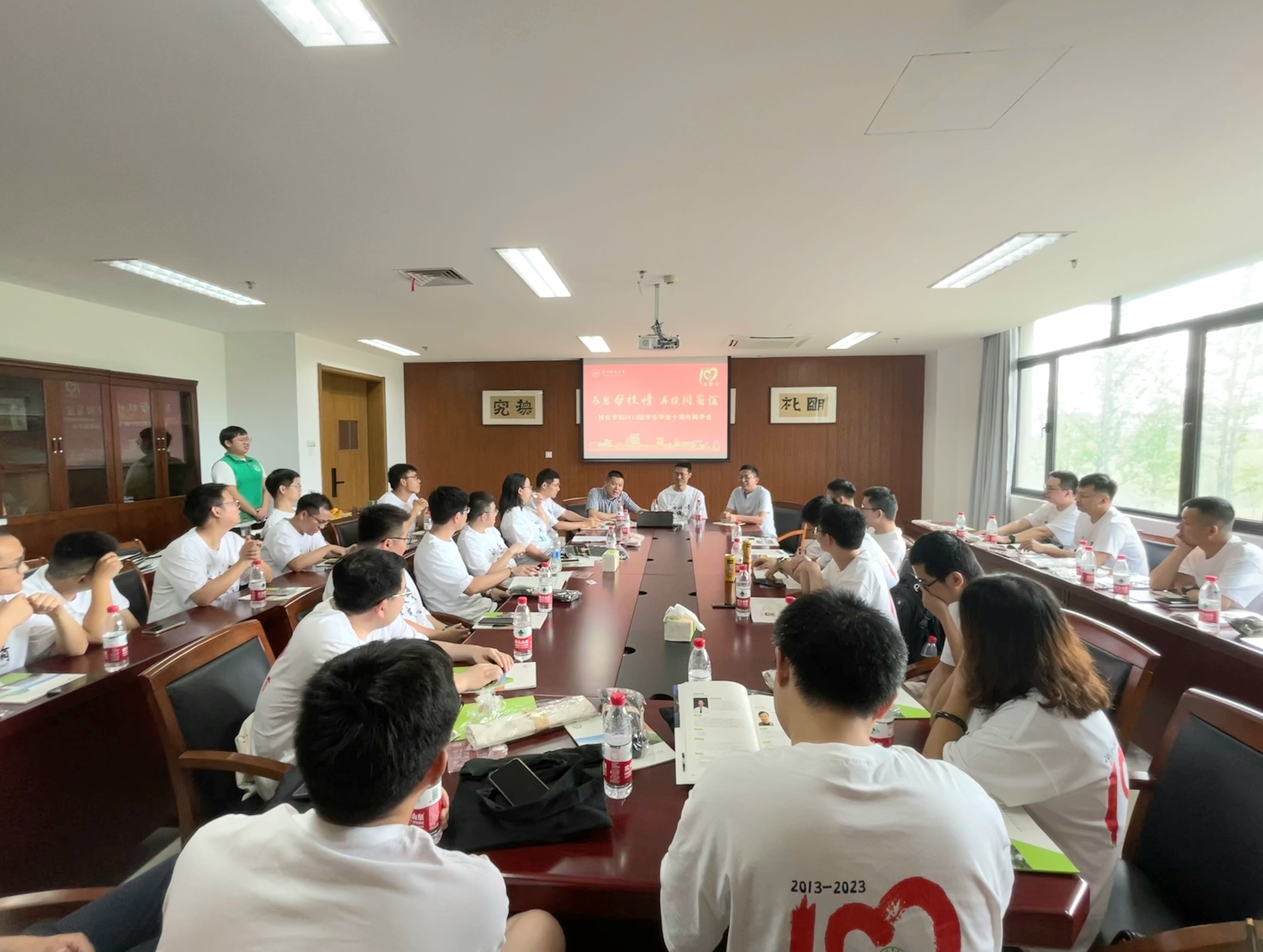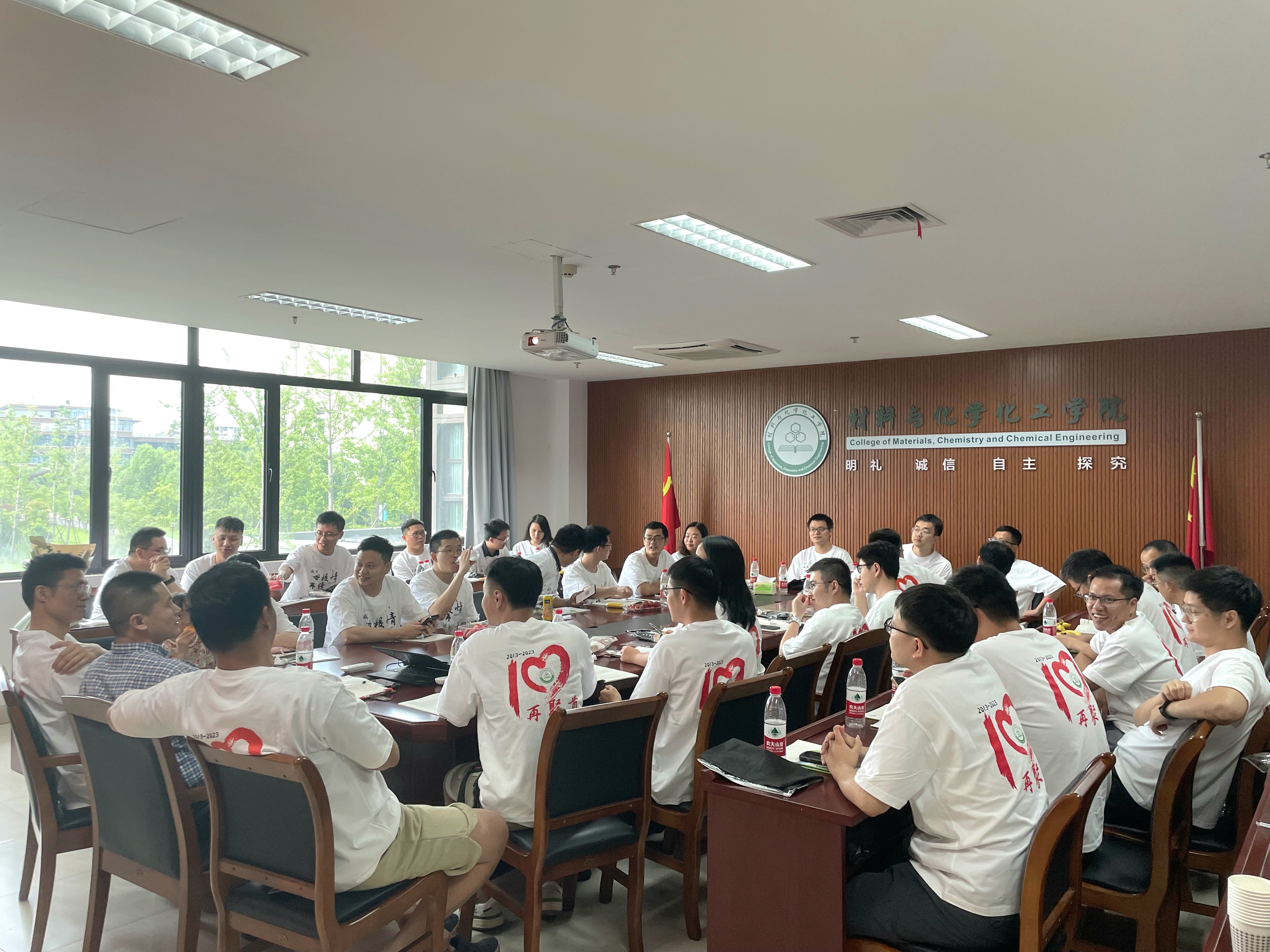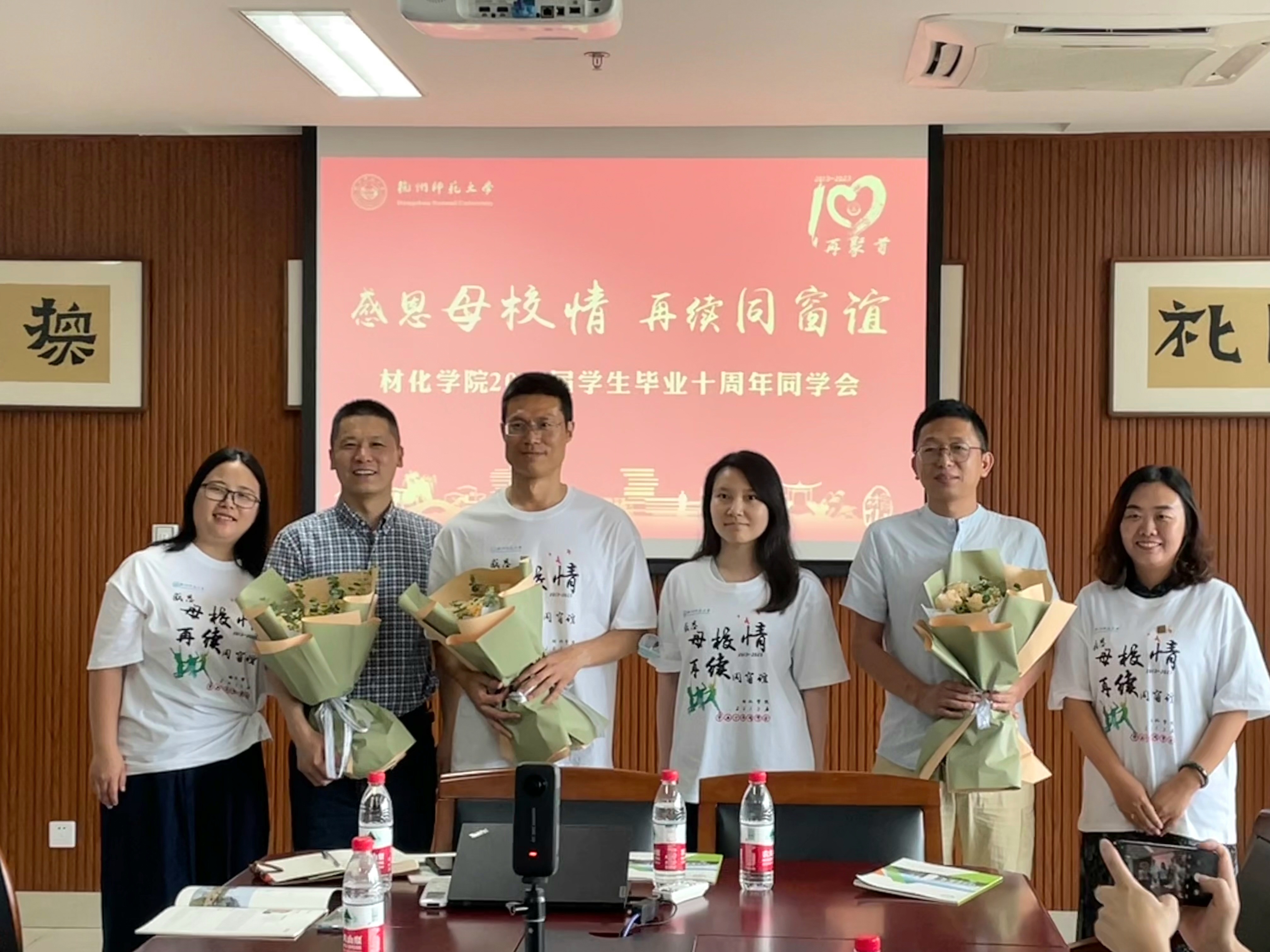 时光荏苒,岁月匆匆。7月8日下午,大师兄影视 2013届本科毕业校友一行30余人重返母校,举办毕业十周年同学会,大家欢聚一堂,感恩母校情,再续同窗谊。学院副院长王民,学院党委副书记、时任年级辅导员管庆江,应化091班班主任李世军,高分子091班班主任宋艳江,学工办主任韩秉峻,辅导员任浩浩参加本次活动。