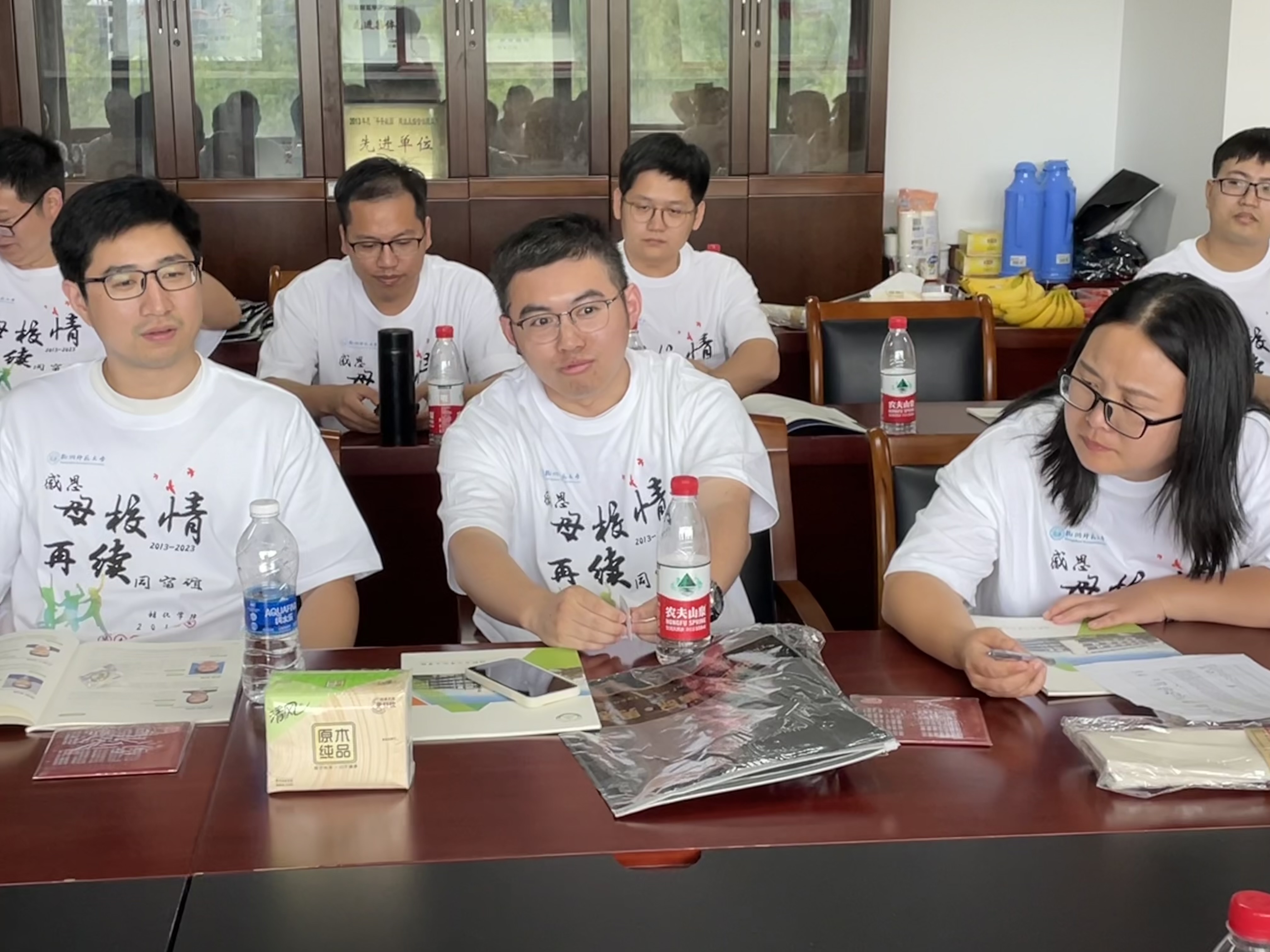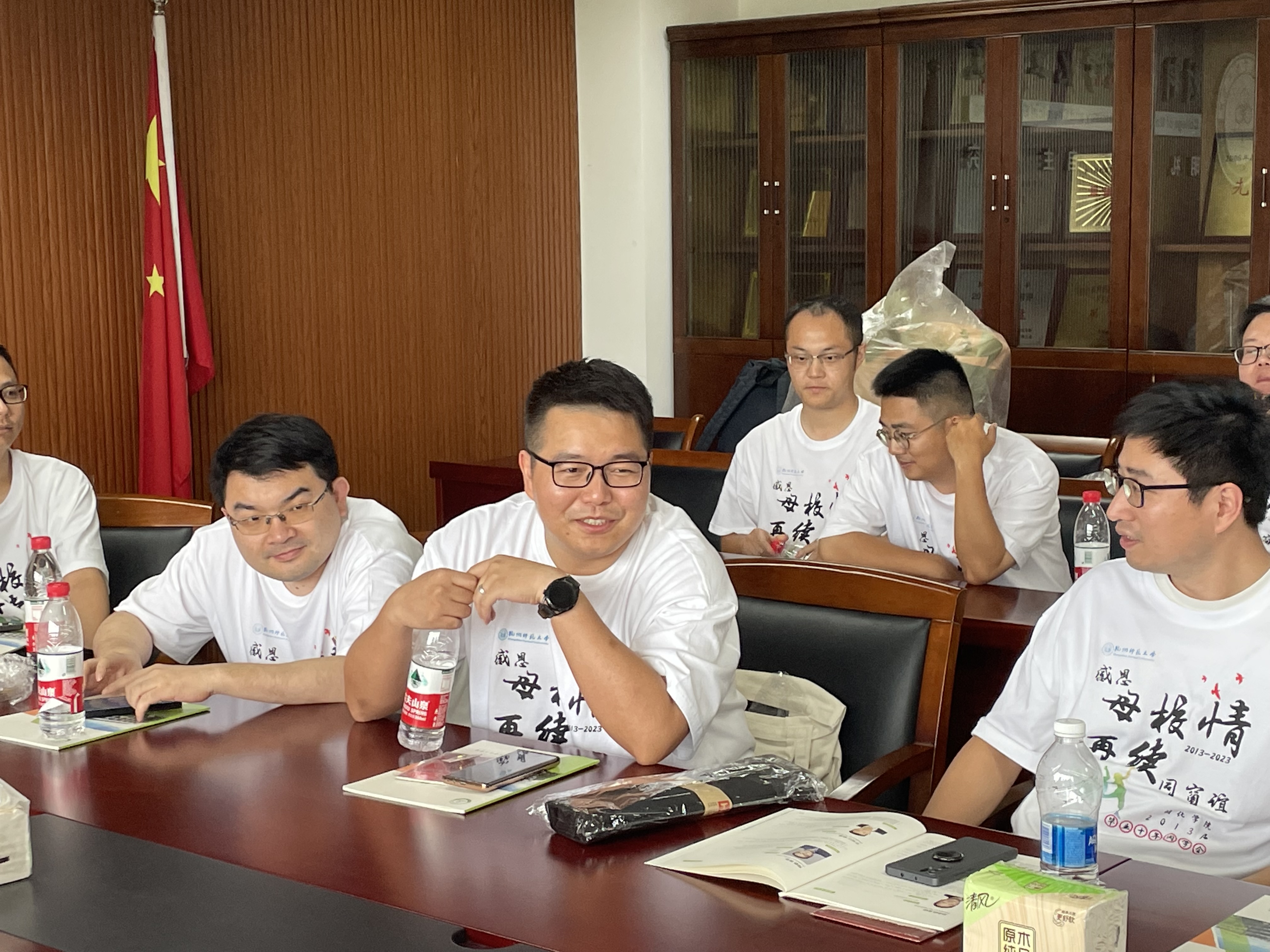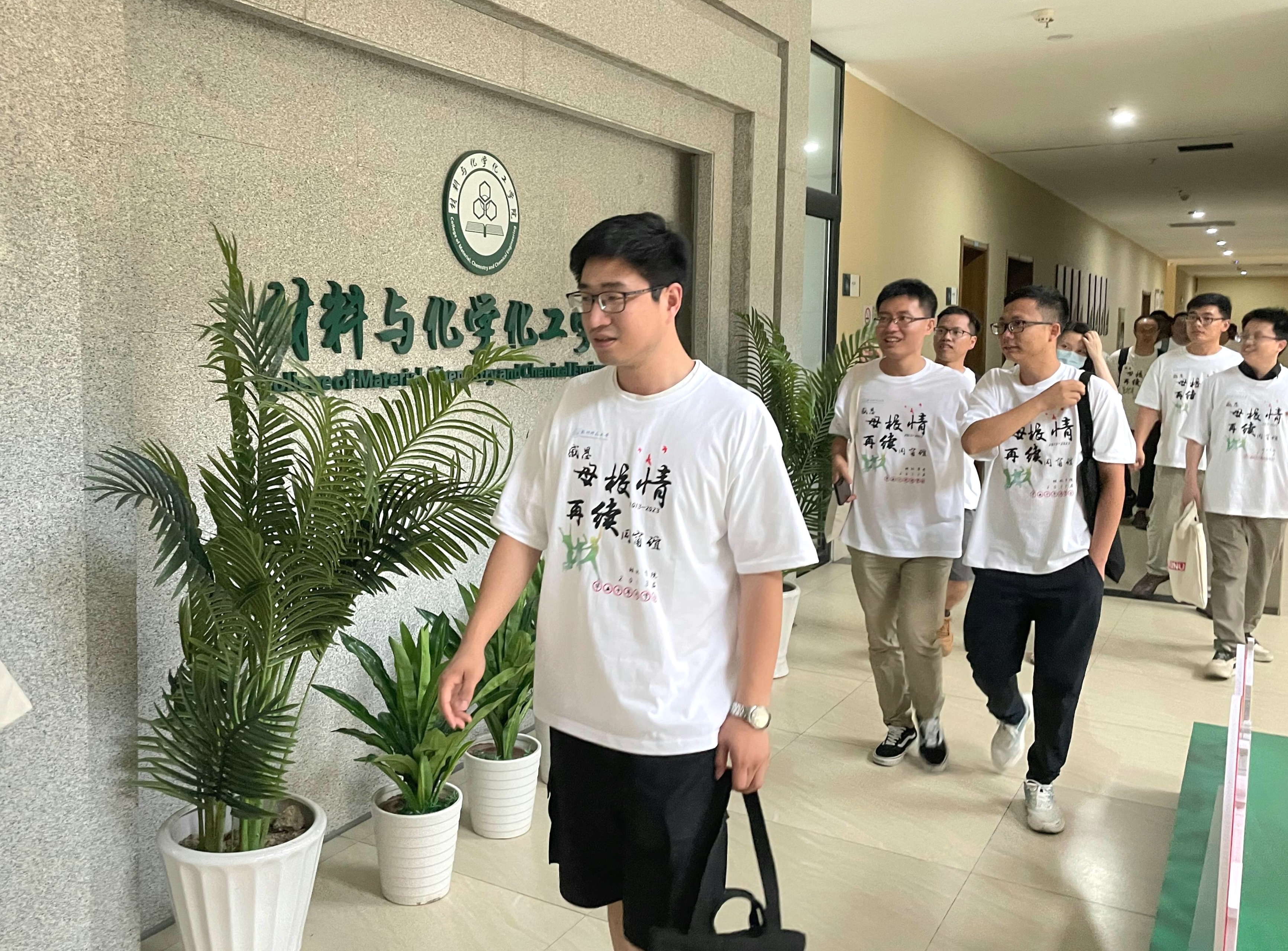 时光荏苒,岁月匆匆。7月8日下午,大师兄影视 2013届本科毕业校友一行30余人重返母校,举办毕业十周年同学会,大家欢聚一堂,感恩母校情,再续同窗谊。学院副院长王民,学院党委副书记、时任年级辅导员管庆江,应化091班班主任李世军,高分子091班班主任宋艳江,学工办主任韩秉峻,辅导员任浩浩参加本次活动。