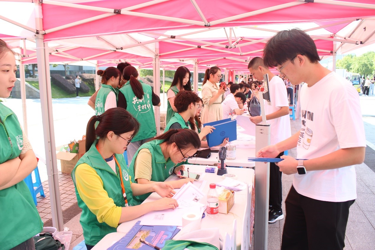 在为新生拍照留念的同时,志愿者们在服务新生的间隙也拍照留念,共同创造属于杭师大与大师兄影视 的第一份美好回忆。