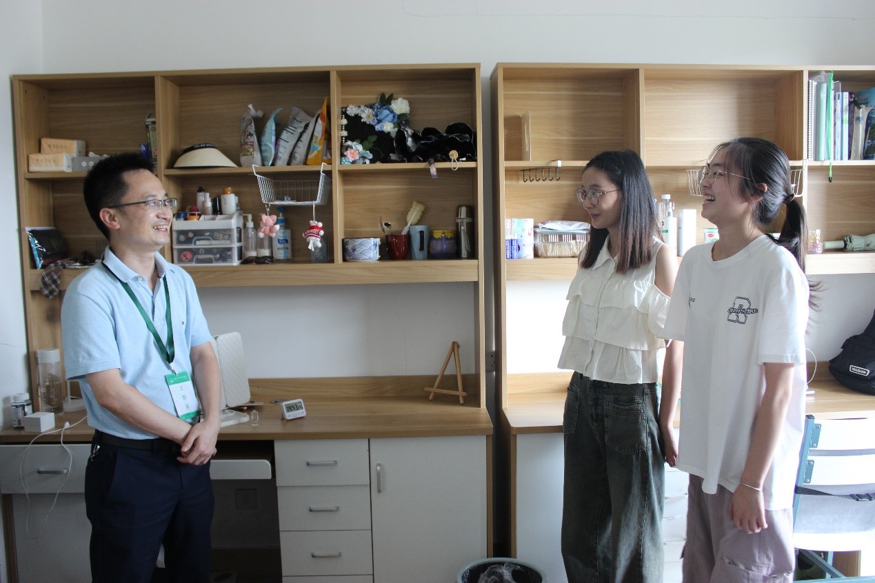 下午,学院领导走访了新生寝室,细致地询问了同学们的学习和生活情况,就居住环境、室友相处、学业展望、生涯规划等和同学们进行了亲切交流,还幽默风趣地分享了自己当年求学时的寝室趣事,勉励大家一定要珍惜在学校读书时的美好时光,踏实努力,勤奋向学,不负韶华。