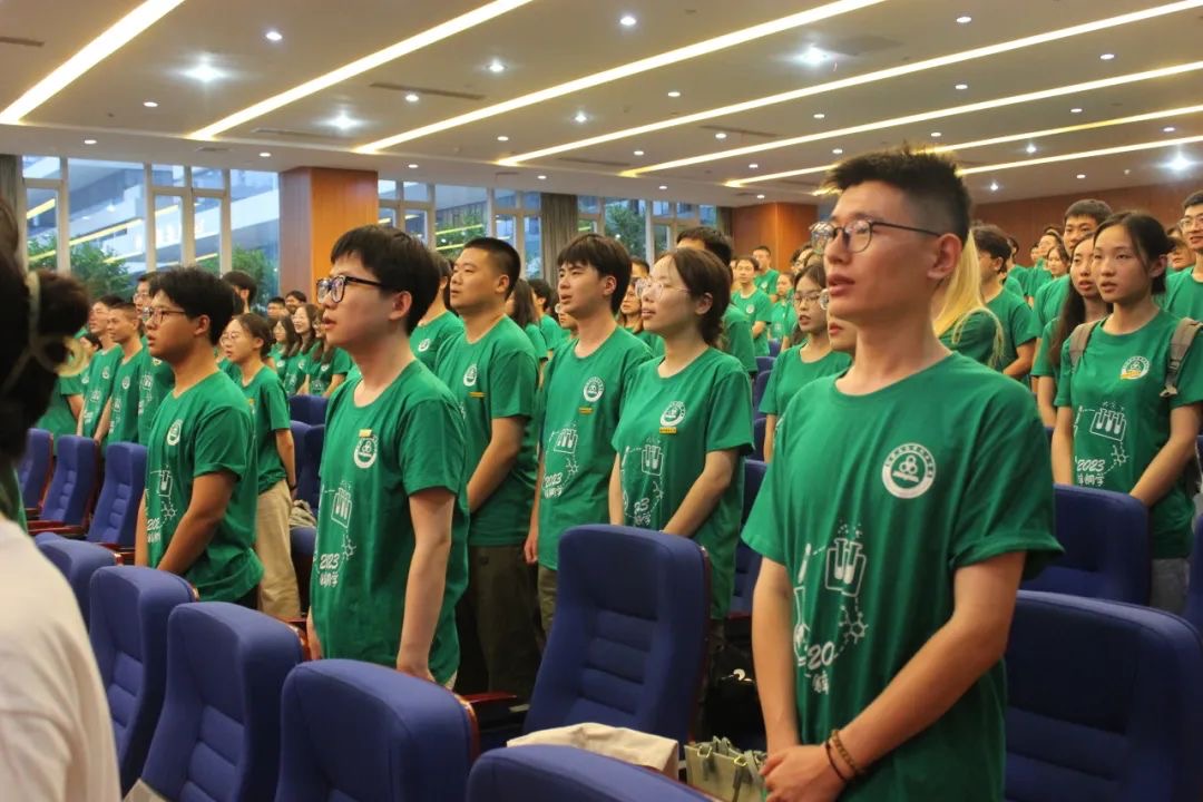 2023级研究生新生开学第一课由党委副书记管庆江主持。全体师生起立共同奏唱国歌,会议在庄严肃穆的国歌声中拉开了帷幕。